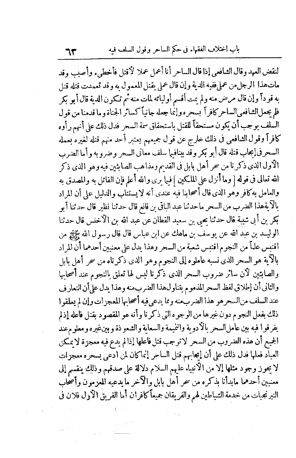 لِنَقْضِ الْعَهْدِ وَقَالَ الشَّافِعِيُّ إذَا قَالَ السَّاحِرُ أَنَا أَعْمَلُ عَمَلًا لِأَقْتُلَ فَأُخْطِئُ وَأُصِيبُ وَقَدْ مَاتَ هَذَا الرَّجُلُ مِنْ عَمَلِي فَفِيهِ الدِّيَةُ وَإِنْ قَالَ عَمَلِي يَقْتُلُ الْمَعْمُولَ بِهِ وَقَدْ تَعَمَّدْت قَتْلَهُ قُتِلَ بِهِ قَوَدًا وَإِنْ قَالَ مرض منه ولم يمت أقسم أوليائه لَمَاتَ مِنْهُ ثُمَّ تَكُونُ الدِّيَةُ قَالَ أَبُو بَكْرٍ فَلَمْ يَجْعَلْ الشَّافِعِيُّ السَّاحِرَ كَافِرًا بِسِحْرِهِ وَإِنَّمَا جَعَلَهُ جَانِيًا كَسَائِرِ الْجُنَاةِ وَمَا قَدَّمْنَا مِنْ قَوْلِ السَّلَفِ يُوجِبُ أَنْ يَكُونَ مُسْتَحِقًّا لِلْقَتْلِ بِاسْتِحْقَاقِ سِمَةِ السِّحْرِ فَدَلَّ ذَلِكَ عَلَى أَنَّهُمْ رَأَوْهُ كَافِرًا وَقَوْلُ الشَّافِعِيِّ فِي ذَلِكَ خارج عن قول جميعهم يَعْتَبِرْ أَحَدٌ مِنْهُمْ قَتْلَهُ لِغَيْرِهِ بِعَمَلِهِ السِّحْرَ فِي إيجَابِ قَتْلِهِ قَالَ أَبُو بَكْرٍ وَقَدْ بَيَّنَّا فِيمَا سَلَفَ مَعَانِي السِّحْرِ وَضُرُوبَهُ وَأَمَّا الضَّرْبُ الْأَوَّلُ الَّذِي ذَكَرْنَا مِنْ سِحْرِ أَهْلِ بَابِلَ فِي الْقَدِيمِ وَمَذَاهِبِ الصَّابِئِينَ فِيهِ وَهُوَ