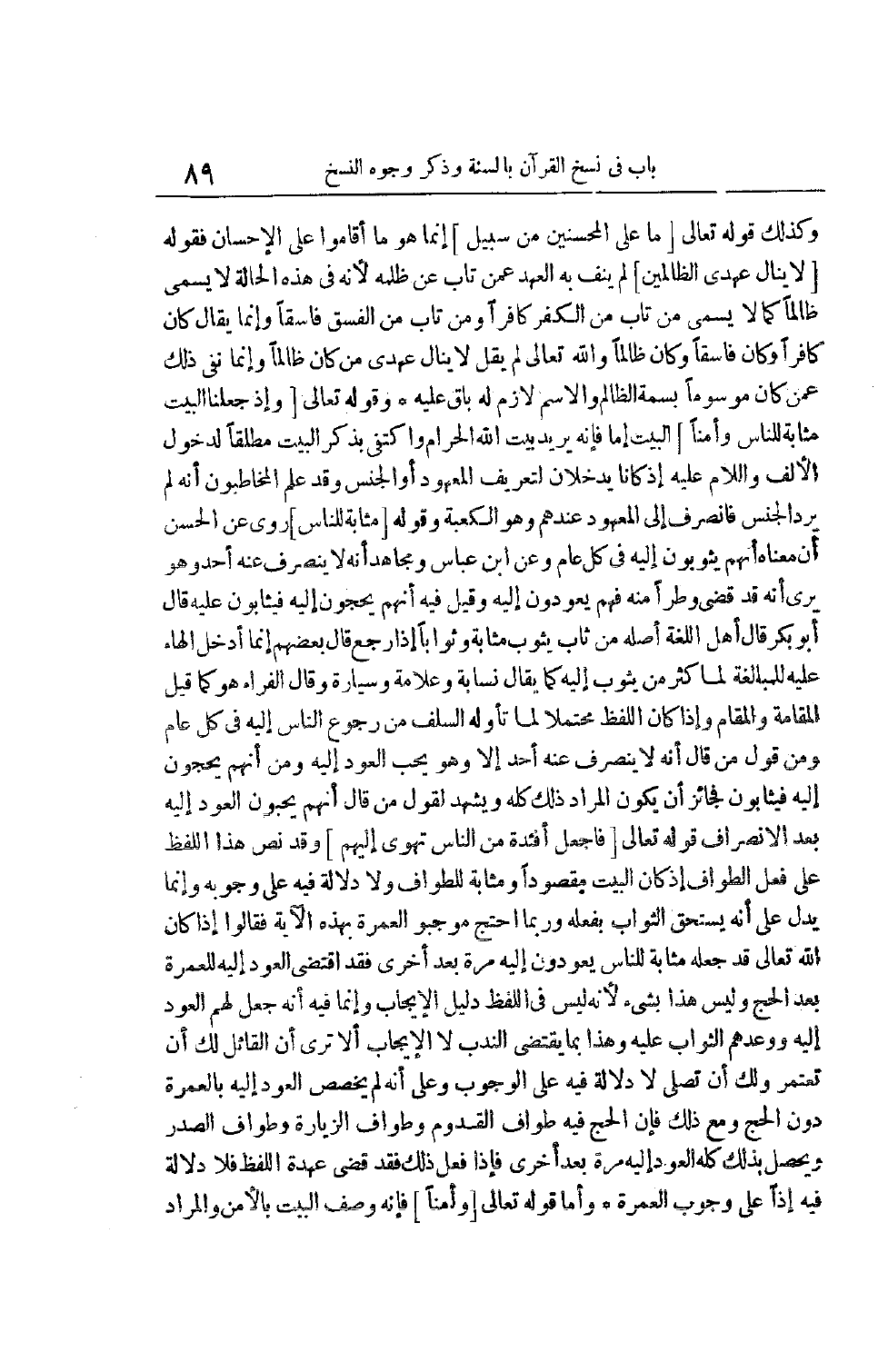 وقوله تَعَالَى [وَإِذْ جَعَلْنَا الْبَيْتَ مَثابَةً لِلنَّاسِ وَأَمْناً] البيت إما فَإِنَّهُ يُرِيدُ بَيْتَ اللَّهِ الْحَرَامَ وَاكْتَفَى بِذِكْرِ الْبَيْتِ مُطْلَقًا لِدُخُولِ الْأَلِفِ وَاللَّامِ عَلَيْهِ إذْ كَانَا يَدْخُلَانِ لِتَعْرِيفِ الْمَعْهُودِ أَوْ الْجِنْسِ وَقَدْ عَلِمَ الْمُخَاطَبُونَ أَنَّهُ لَمْ يُرِدْ الْجِنْسَ فَانْصَرَفَ إلَى الْمَعْهُودِ عِنْدَهُمْ وَهُوَ الْكَعْبَةُ وَقَوْلُهُ [مَثابَةً لِلنَّاسِ] رُوِيَ عَنْ الْحَسَنِ أَنَّ مَعْنَاهُ أَنَّهُمْ يَثُوبُونَ إلَيْهِ فِي كُلِّ عَامٍ وَعَنْ ابْنِ عَبَّاسٍ وَمُجَاهِدٍ أَنَّهُ لَا يَنْصَرِفُ عَنْهُ أَحَدٌ وَهُوَ يَرَى أَنَّهُ قَدْ قَضَى وَطَرًا مِنْهُ فَهُمْ يَعُودُونَ إلَيْهِ وَقِيلَ فِيهِ إنَّهُمْ يَحُجُّونَ إلَيْهِ فَيُثَابُونَ عَلَيْهِ قَالَ أَبُو بَكْرٍ قَالَ أَهْلُ اللُّغَةِ أَصْلُهُ مِنْ ثَابَ يَثُوبُ مَثَابَةً وَثَوَابًا إذَا رَجَعَ قَالَ بَعْضُهُمْ إنَّمَا أَدْخَلَ الْهَاءَ عَلَيْهِ لِلْمُبَالَغَةِ لَمَّا كَثُرَ مَنْ يَثُوبُ إلَيْهِ كَمَا يُقَالُ نَسَّابَةٌ وَعَلَّامَةٌ وَسَيَّارَةٌ وَقَالَ الْفَرَّاءُ هُوَ كَمَا قِيلَ الْمَقَامَةُ وَالْمَقَامُ وَإِذَا كَانَ اللَّفْظُ مُحْتَمِلًا لَمَا تَأَوَّلَهُ السَّلَفُ مِنْ رُجُوعِ النَّاسِ إلَيْهِ فِي كُلِّ عَامٍ وَمِنْ قَوْلِ مَنْ قَالَ إنَّهُ لَا يَنْصَرِفُ عَنْهُ أَحَدٌ إلَّا وَهُوَ يُحِبُّ الْعَوْدَ إلَيْهِ وَمِنْ أَنَّهُمْ يَحُجُّونَ إلَيْهِ فَيُثَابُونَ فَجَائِزٌ أَنْ يَكُونَ الْمُرَادُ ذَلِكَ كُلَّهُ وَيَشْهَدُ لِقَوْلِ مَنْ قَالَ إنَّهُمْ يُحِبُّونَ الْعَوْدَ إلَيْهِ بَعْدَ الِانْصِرَافِ قَوْله تَعَالَى [فَاجْعَلْ أَفْئِدَةً مِنَ النَّاسِ تَهْوِي إِلَيْهِمْ] وَقَدْ نَصَّ هَذَا اللَّفْظُ عَلَى فِعْلِ الطَّوَافِ إذْ كَانَ الْبَيْتُ مَقْصُودًا وَمَثَابَةً لِلطَّوَافِ وَلَا دَلَالَةَ فِيهِ عَلَى وُجُوبِهِ وَإِنَّمَا يَدُلُّ عَلَى أَنَّهُ يَسْتَحِقُّ الثَّوَابَ بِفِعْلِهِ وَرُبَّمَا احْتَجَّ مُوجِبُو الْعُمْرَةِ بِهَذِهِ الْآيَةِ فَقَالُوا إذَا كَانَ اللَّهُ تَعَالَى قَدْ جَعَلَهُ مَثَابَةً لِلنَّاسِ يَعُودُونَ إلَيْهِ مَرَّةً بَعْدَ أُخْرَى فَقَدْ اقْتَضَى الْعَوْدَ إلَيْهِ لِلْعُمْرَةِ بَعْدَ الْحَجِّ وَلَيْسَ هَذَا بِشَيْءٍ لِأَنَّهُ لَيْسَ فِي اللَّفْظِ دَلِيلُ الْإِيجَابِ وَإِنَّمَا فِيهِ أَنَّهُ جَعَلَ لَهُمْ الْعَوْدَ إلَيْهِ وَوَعَدَهُمْ الثَّوَابَ عليه وهذا بما يَقْتَضِي النَّدْبَ لَا الْإِيجَابَ أَلَا تَرَى أَنَّ الْقَائِلَ لَك أَنْ تَعْتَمِرَ وَلَك أَنْ تُصَلِّيَ لَا دَلَالَةَ فِيهِ عَلَى الْوُجُوبِ وَعَلَى أَنَّهُ لَمْ يُخَصِّصْ الْعَوْدَ إلَيْهِ بِالْعُمْرَةِ دُونَ الْحَجِّ وَمَعَ ذَلِكَ فَإِنَّ الْحَجَّ فِيهِ طَوَافُ الْقُدُومِ وَطَوَافُ الزِّيَارَةِ وَطَوَافُ الصَّدَرِ وَيَحْصُلُ بِذَلِكَ كُلِّهِ الْعَوْدُ إلَيْهِ مَرَّةً بَعْدَ أُخْرَى فَإِذَا فَعَلَ ذَلِكَ فَقَدْ قَضَى عُهْدَةَ اللَّفْظِ فَلَا دَلَالَةَ فِيهِ إذَا عَلَى وُجُوبِ الْعُمْرَةِ وَأَمَّا قَوْله تعالى [وَأَمْناً] فَإِنَّهُ وَصَفَ الْبَيْتَ بِالْأَمْنِ وَالْمُرَادُ