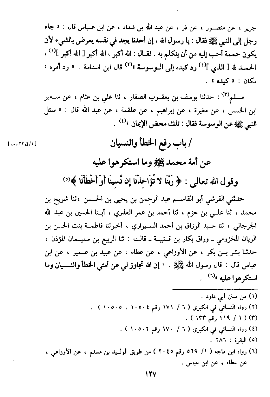 / بَاب رفع الْخَطَأ وَالنِّسْيَان عَن أمة مُحَمَّد - صَلَّى اللَّهُ عَلَيْهِ وَسَلَّم َ - وَمَا اسْتكْرهُوا عَلَيْهِ وَقَول الله تَعَالَى: {رَبنَا لَا تُؤَاخِذنَا إِن نَسِينَا أَو أَخْطَأنَا}