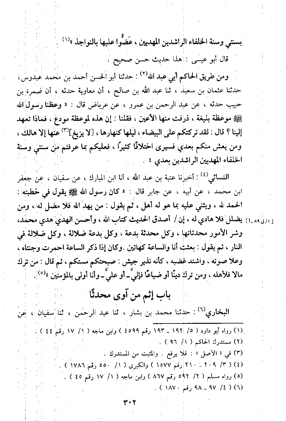 بِسنتي وَسنة الْخُلَفَاء الرَّاشِدين المهديين، عضوا عَلَيْهَا بالنواجذ ". قَالَ أَبُو عِيسَى: هَذَا حَدِيث حسن صَحِيح.