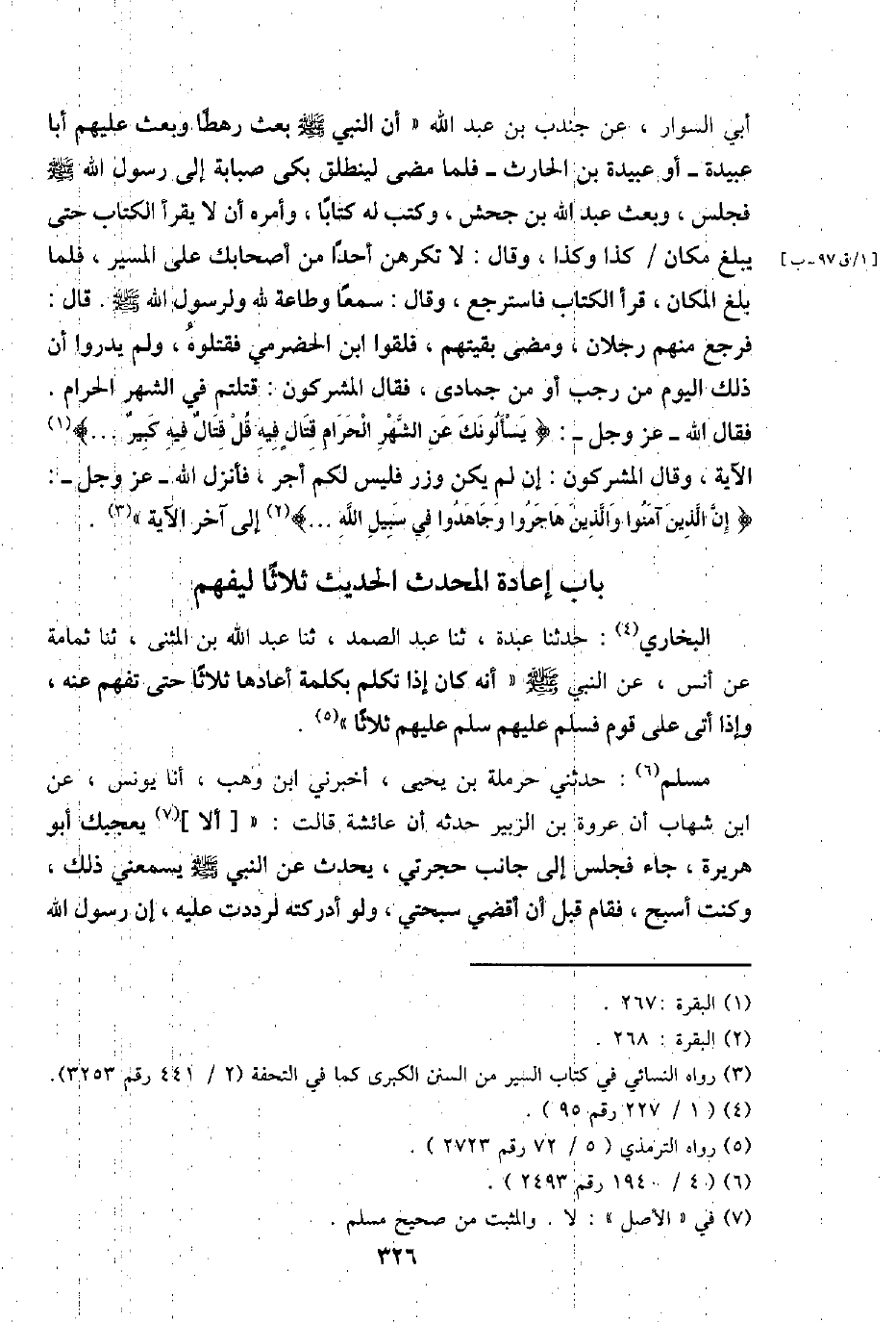 بَاب إِعَادَة الْمُحدث الحَدِيث ثَلَاثًا ليفهم