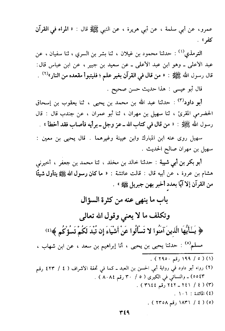 {يَا أَيهَا الَّذين آمنُوا لَا تسألوا عَن أَشْيَاء إِن تبد لكم تَسُؤْكُمْ}