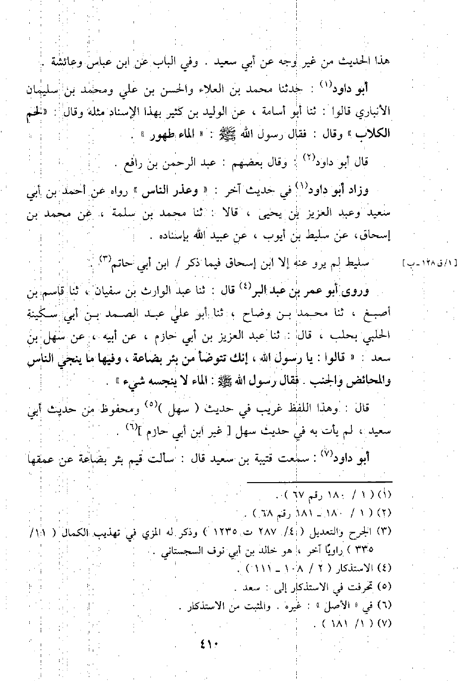 أَبُو دَاوُد: سَمِعت قُتَيْبَة بن سعيد قَالَ: سَأَلت قيم بِئْر بضَاعَة عَن عمقها