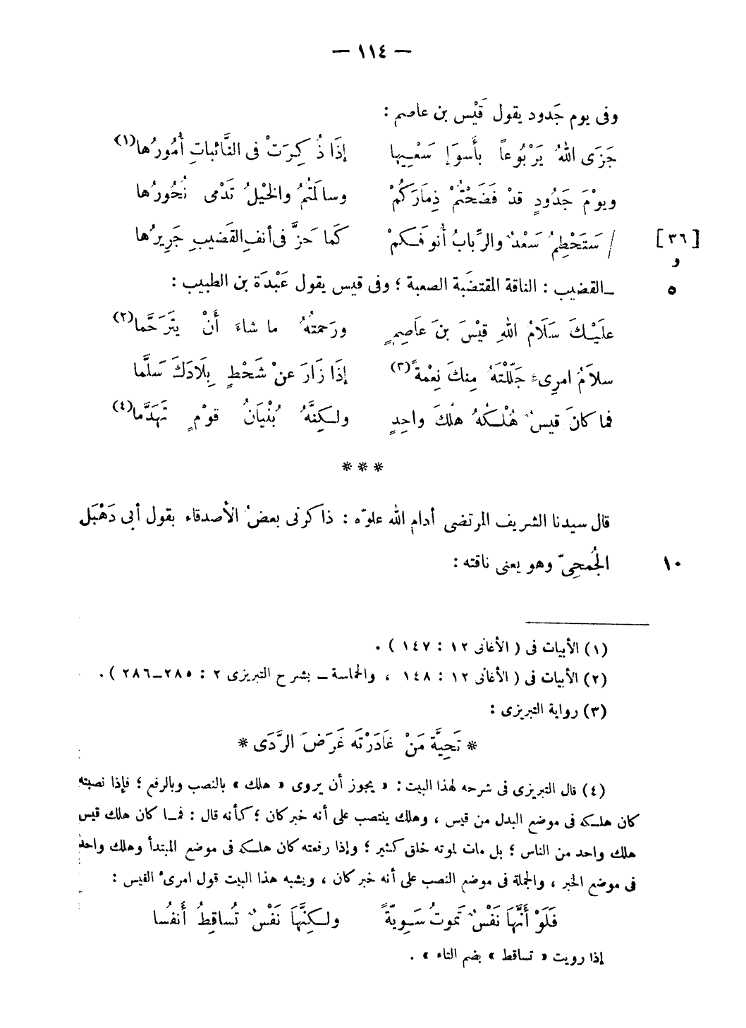 *** قال سيدنا الشريف المرتضى أدام الله علوّه: ذاكرنى بعض الأصدقاء بقول أبى دهبل الجمحىّ وهو يعنى ناقته: