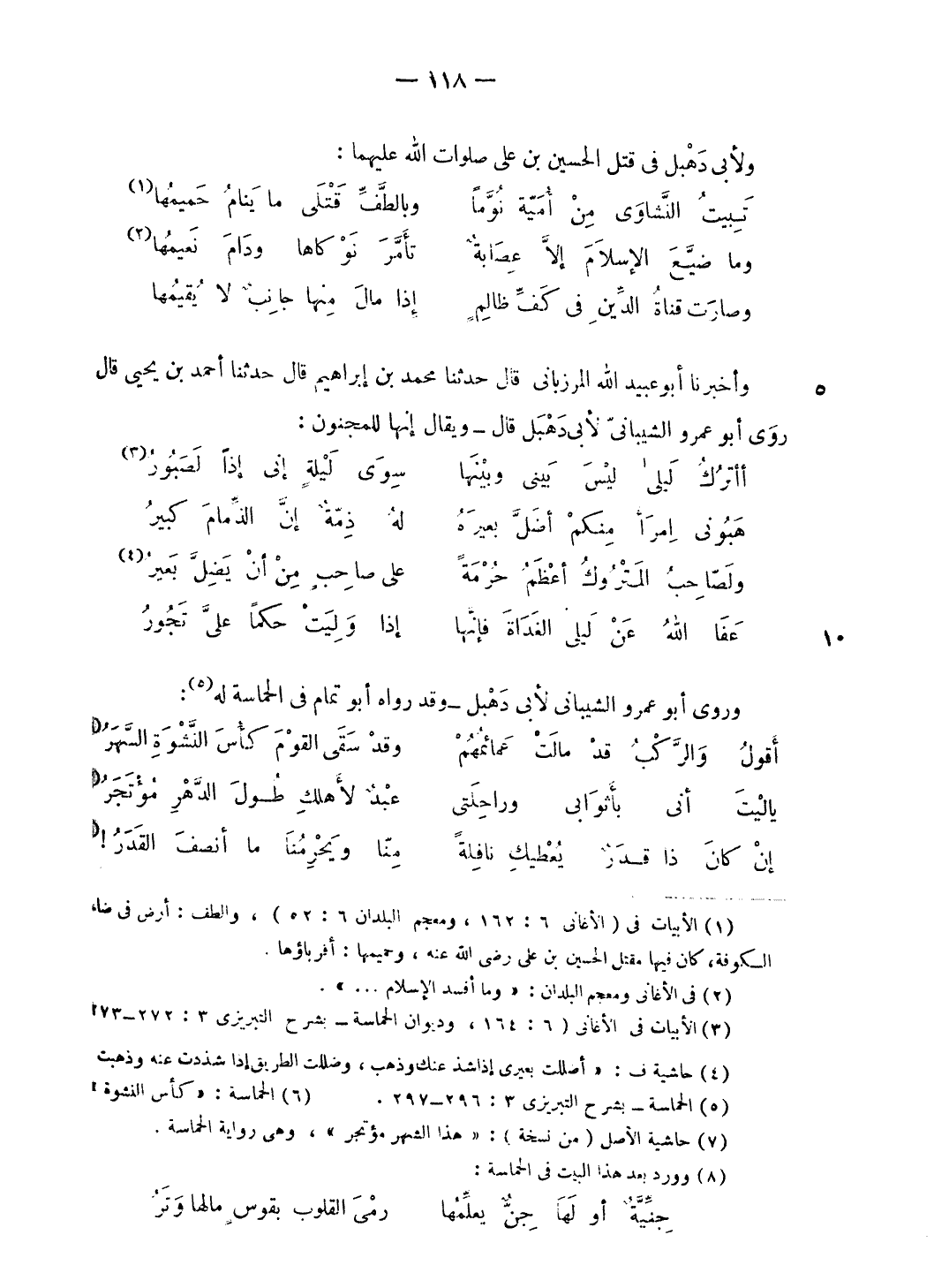 (¬1) الأبيات فى (الأغانى 6: 162، ومعجم البلدان 6: 52)، والطف: أرض فى ضاحية الكوفة، كان فيها مقتل الحسين بن على رضى الله عنه، وحميمها: أقرباؤها.
