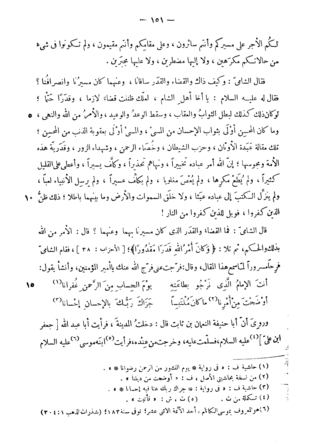 (¬6) هو المعروف بموسى الكاظم، أحد الأئمة الاثنى عشر؛ توفى سنة 183؛ (شذرات الذهب 1: 304).