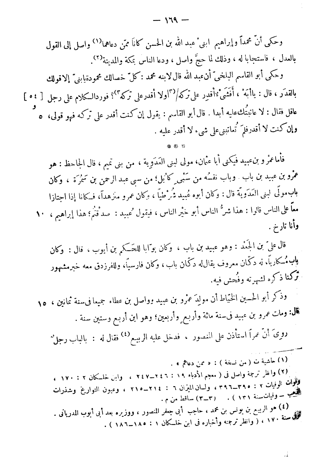 (¬2) وانظر ترجمة واصل فى (معجم الأدباء 19: 246 - 247، وابن خلكان 2: 170، وفوات الوفيات 2: 395 - 396، ولسان الميزان 6: 214 - 215، وعيون التواريخ وشذرات الذهب- وفيات سنة 131).