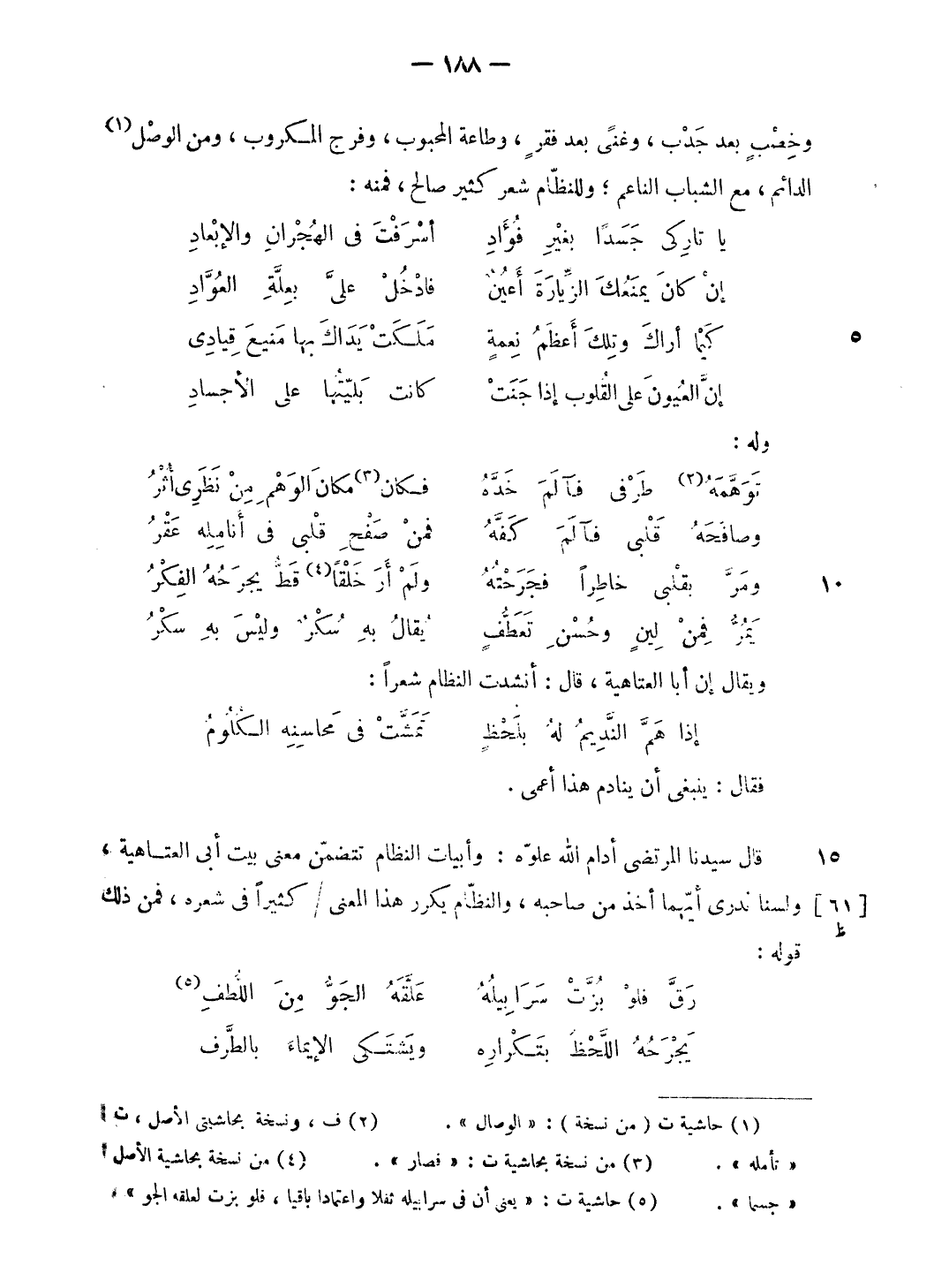 قال سيدنا المرتضى أدام الله علوّه: وأبيات النظام تتضمّن معنى بيت أبى العتاهية، ولسنا ندرى أيّهما أخذ من صاحبه، والنظّام يكرر هذا المعنى/ كثيرا فى شعره، فمن ذلك قوله: