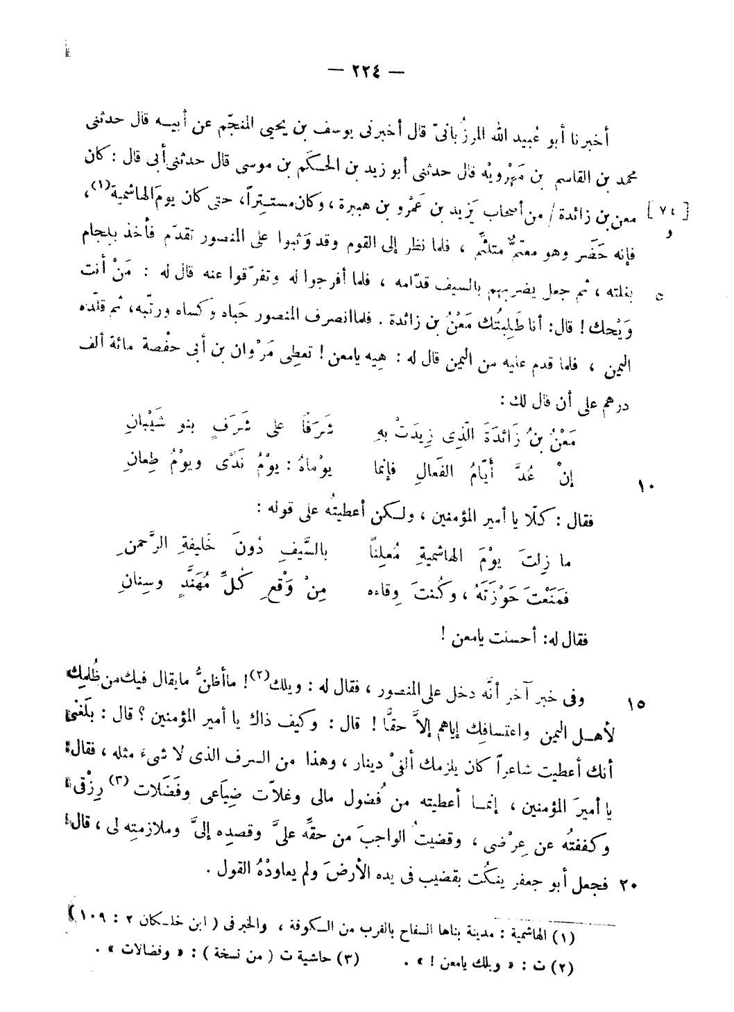 (¬1) الهاشمية: مدينة بناها السفاح بالقرب من الكوفة، والخبر فى (ابن خلكان 2: 109).