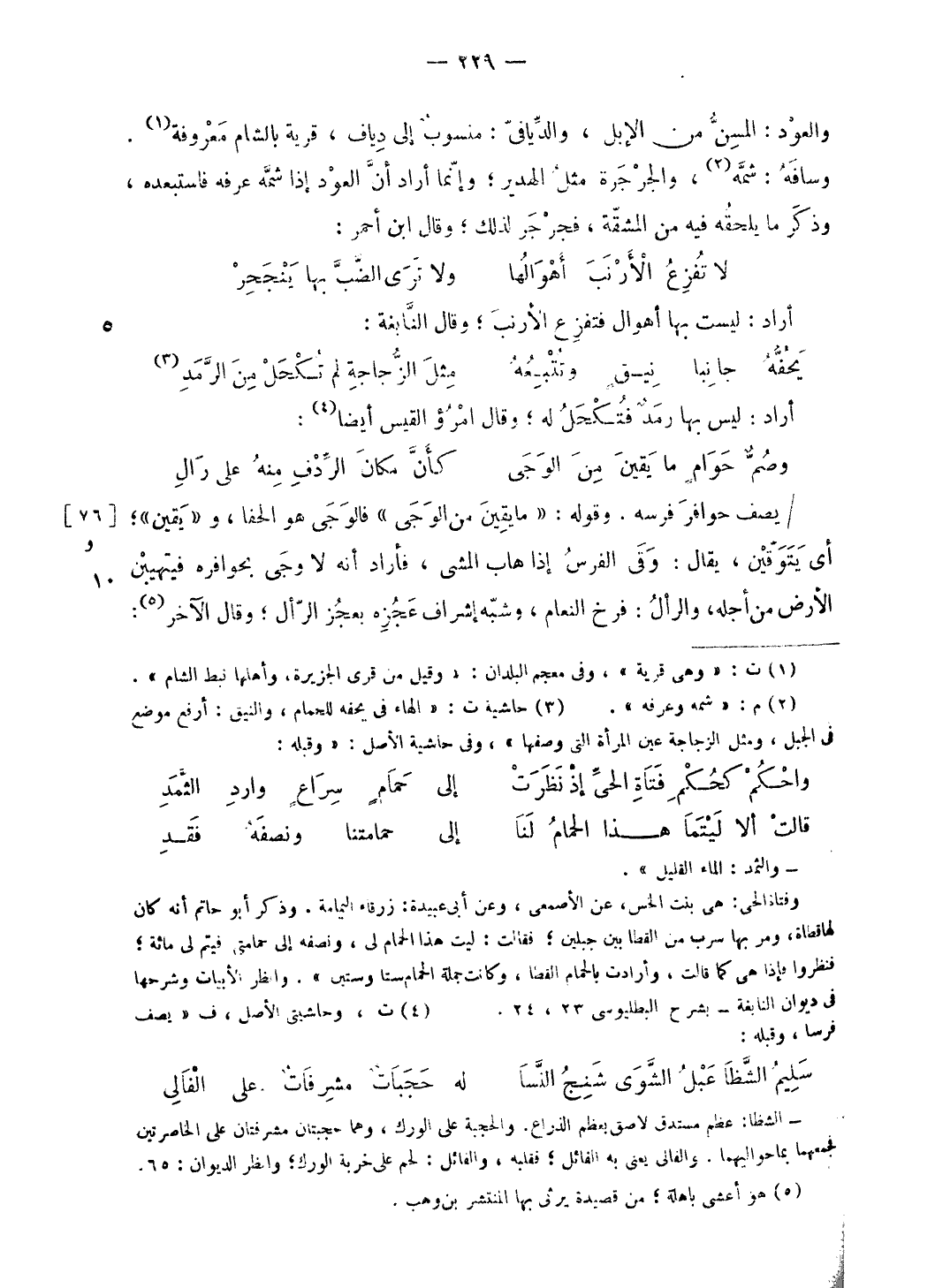 (¬3) حاشية ت: «الهاء فى يحفه للحمام، والنيق: أرفع موضع فى الجبل، ومثل الزجاجة عين المرأة التى وصفها»، وفى حاشية الأصل: «وقبله: