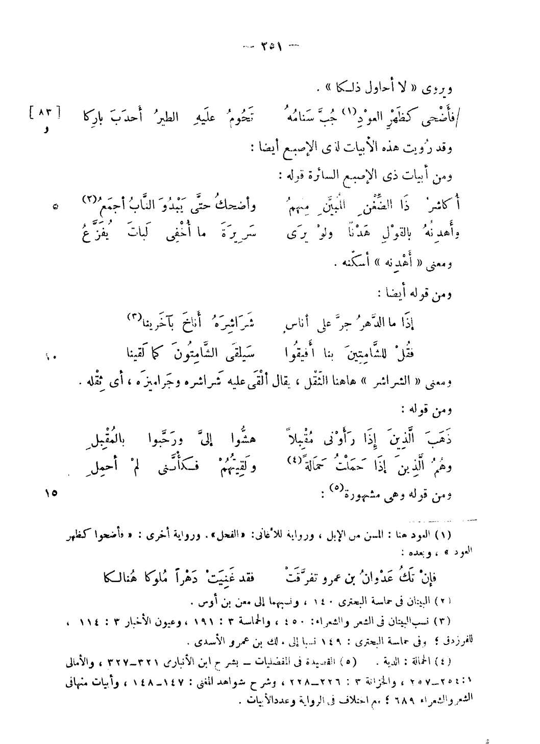 (¬5) القصيدة فى المفضليات- بشرح ابن الأنبارى 321 - 327، والأمالى 1: 254 - 257، والخزانة 3: 226 - 228، وشرح شواهد المغنى: 147 - 148، وأبيات منها فى الشعر والشعراء 689؛ مع اختلاف فى الرواية وعدد الأبيات.