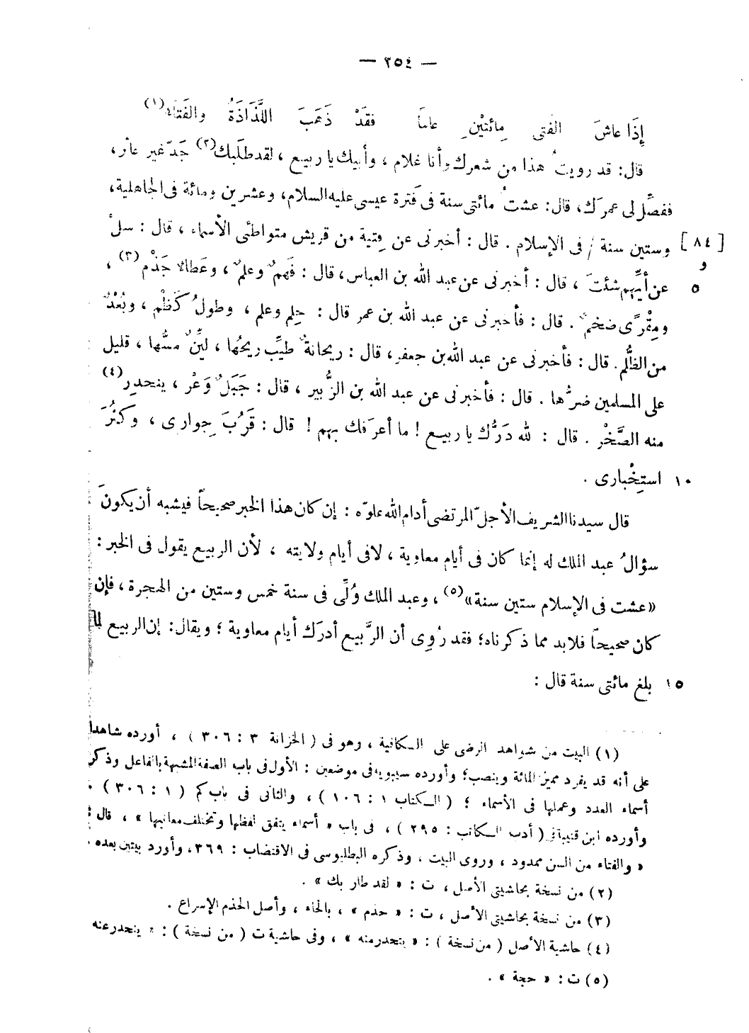 «عشت فى الإسلام ستين سنة» (¬5)، وعبد الملك ولى فى سنة خمس وستين من الهجرة، فإن كان صحيحا فلا بد مما ذكرناه؛ فقد روى أن الرّبيع أدرك أيام معاوية؛ ويقال: إن الربيع لما بلغ مائتى سنة قال: