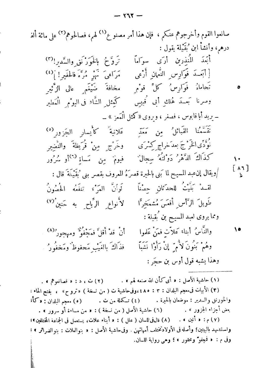 / ويقال إن عبد المسيح لما بنى بالحيرة قصره المعروف بقصر بنى بقيلة قال: