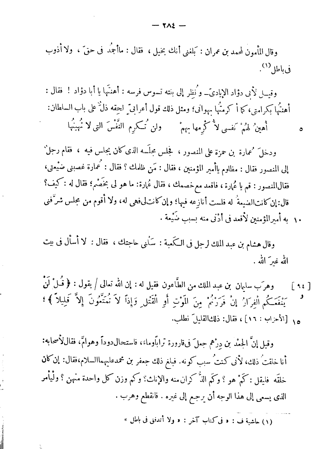 وهرب سليمان بن عبد الملك من الطّاعون فقيل له: إن الله تعالى/ يقول: قُلْ لَنْ يَنْفَعَكُمُ الْفِرارُ إِنْ فَرَرْتُمْ مِنَ الْمَوْتِ أَوِ الْقَتْلِ وَإِذاً لا تُمَتَّعُونَ إِلَّا قَلِيلًا؛ [الأحزاب: 16]، فقال: ذلك القليل نطلب.