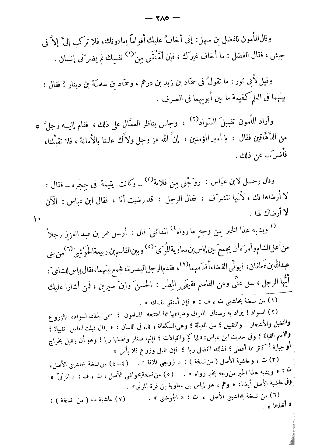 وأراد المأمون تقبيل السّواد (¬2)، وجلس يناظر العمّال على ذلك، فقام إليه رجل من الدّهاقين فقال: يا أمير المؤمنين، إنّ الله عز وجل ولّاك علينا بالأمانة، فلا تقبّلنا، فأضرب عن ذلك.