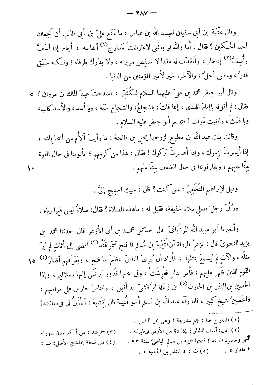 الرواة أن قتيبة بن مسلم لما فتح سمرقند (¬3) أفضى إلى أثاث لم ير مثله، وآلات لم يسمع بمثلها، فأراد أن يرى الناس عظيم ما فتح، ويعرّفهم أقدار (¬4) القوم الذين ظهر عليهم، فأمر بدار ففرشت، وفى صحنها قدور يرتقى إليها بسلاليم، وإذا الحصين بن المنذر بن الحارث (¬5) بن وعلة الرّقاشىّ قد أقبل، والناس جلوس على مراتبهم، والحصين شيخ كبير، فلما رآه عبد الله بن مسلم أخو قتيبة قال لقتيبة: أتأذن لى فى معاتبته؟