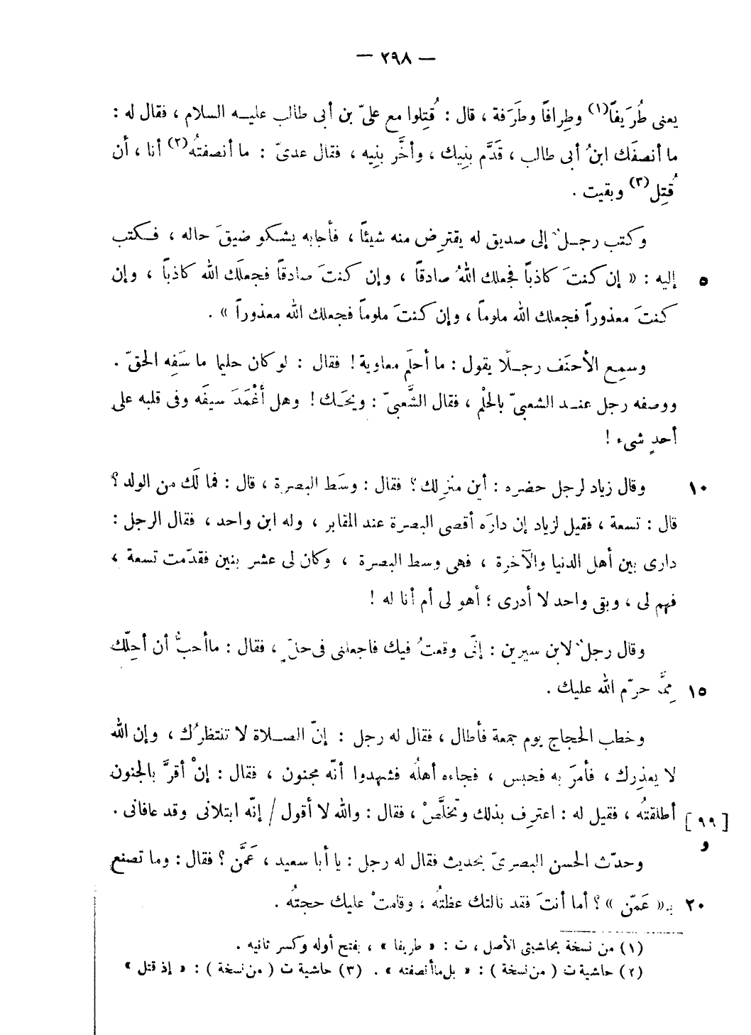وحدّث الحسن البصرىّ بحديث فقال له رجل: يا أبا سعيد، عمّن؟ فقال: وما تصنع ب «عمّن»؟ أما أنت فقد نالتك عظته، وقامت عليك حجته.