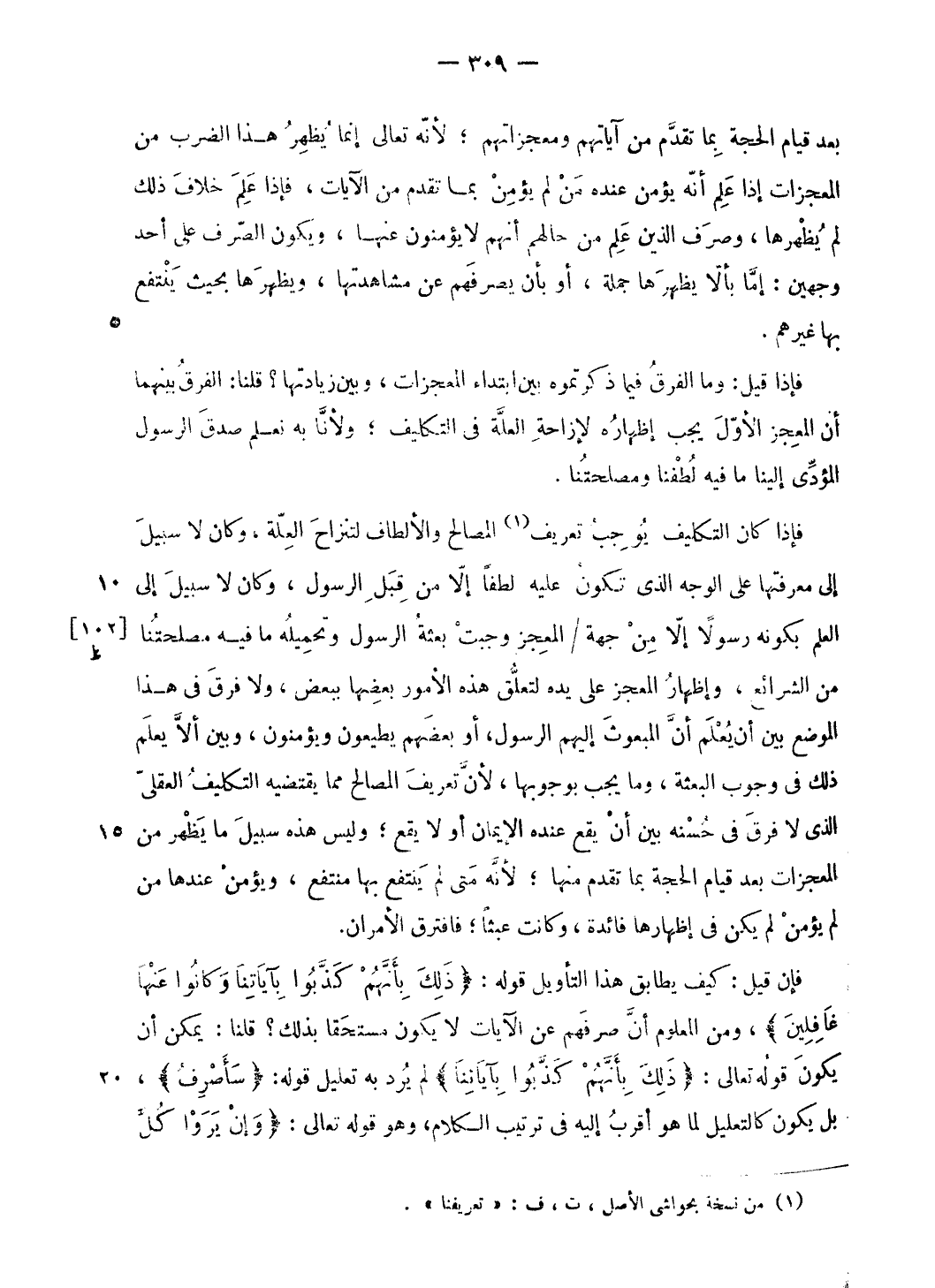 فإذا قيل: وما الفرق فيما ذكرتموه بين ابتداء المعجزات، وبين زيادتها؟ قلنا: الفرق بينهما أن المعجز الأوّل يجب إظهاره لإزاحة العلّة فى التكليف؛ ولأنّا به نعلم صدق الرسول المؤدّى إلينا ما فيه لطفنا ومصلحتنا.