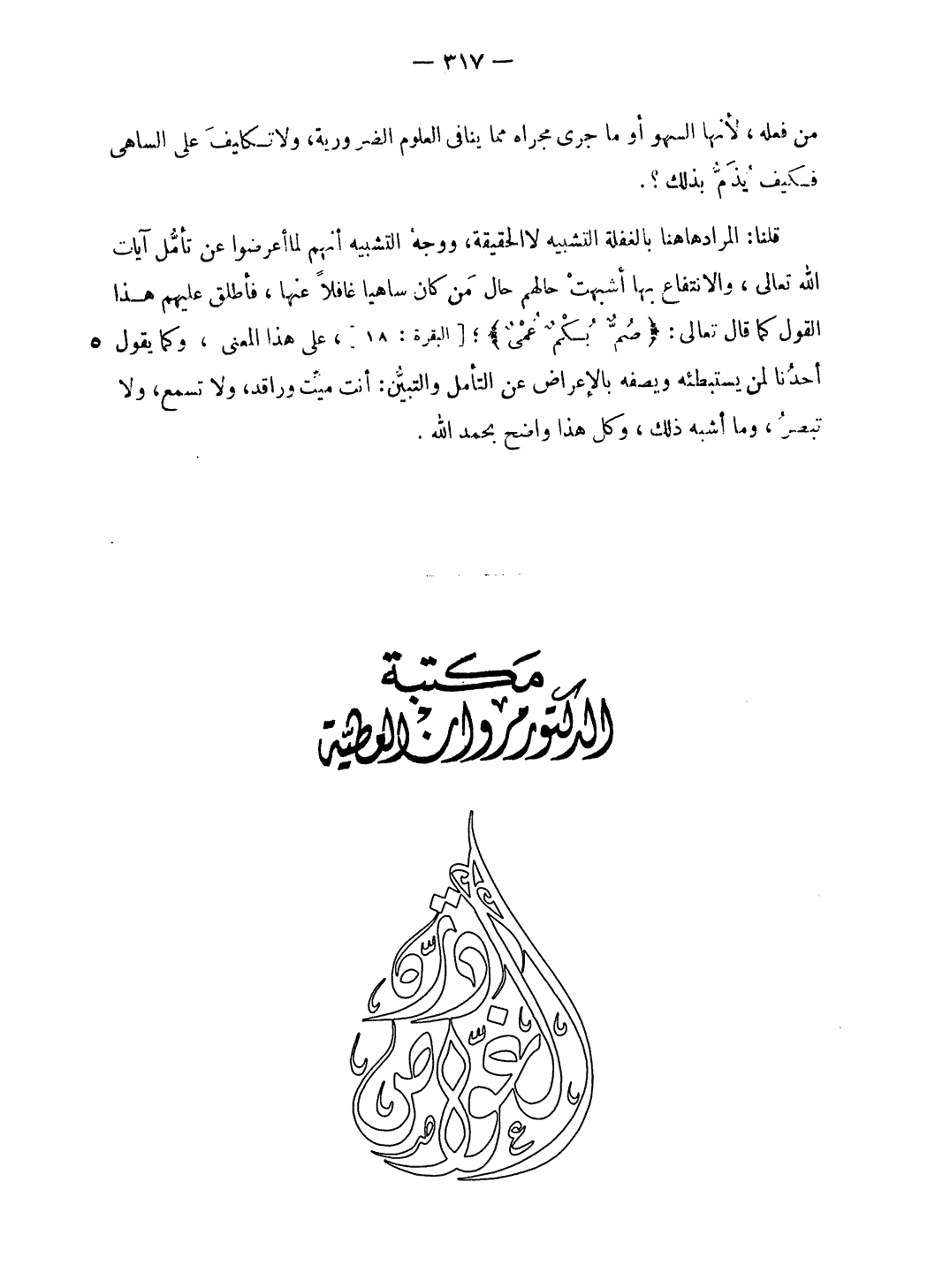 قلنا: المراد هاهنا بالغفلة التشبيه لا الحقيقة، ووجه التشبيه أنهم لما أعرضوا عن تأمّل آيات الله تعالى، والانتفاع بها أشبهت حالهم حال من كان ساهيا غافلا عنها، فأطلق عليهم هذا القول كما قال تعالى: صُمٌّ بُكْمٌ عُمْيٌ؛ [البقرة: 18]، على هذا المعنى، وكما يقول أحدنا لمن يستبطئه ويصفه بالإعراض عن التأمل والتبيّن: أنت ميّت وراقد، ولا تسمع، ولا تبصر، وما أشبه ذلك، وكل هذا واضح بحمد الله.
