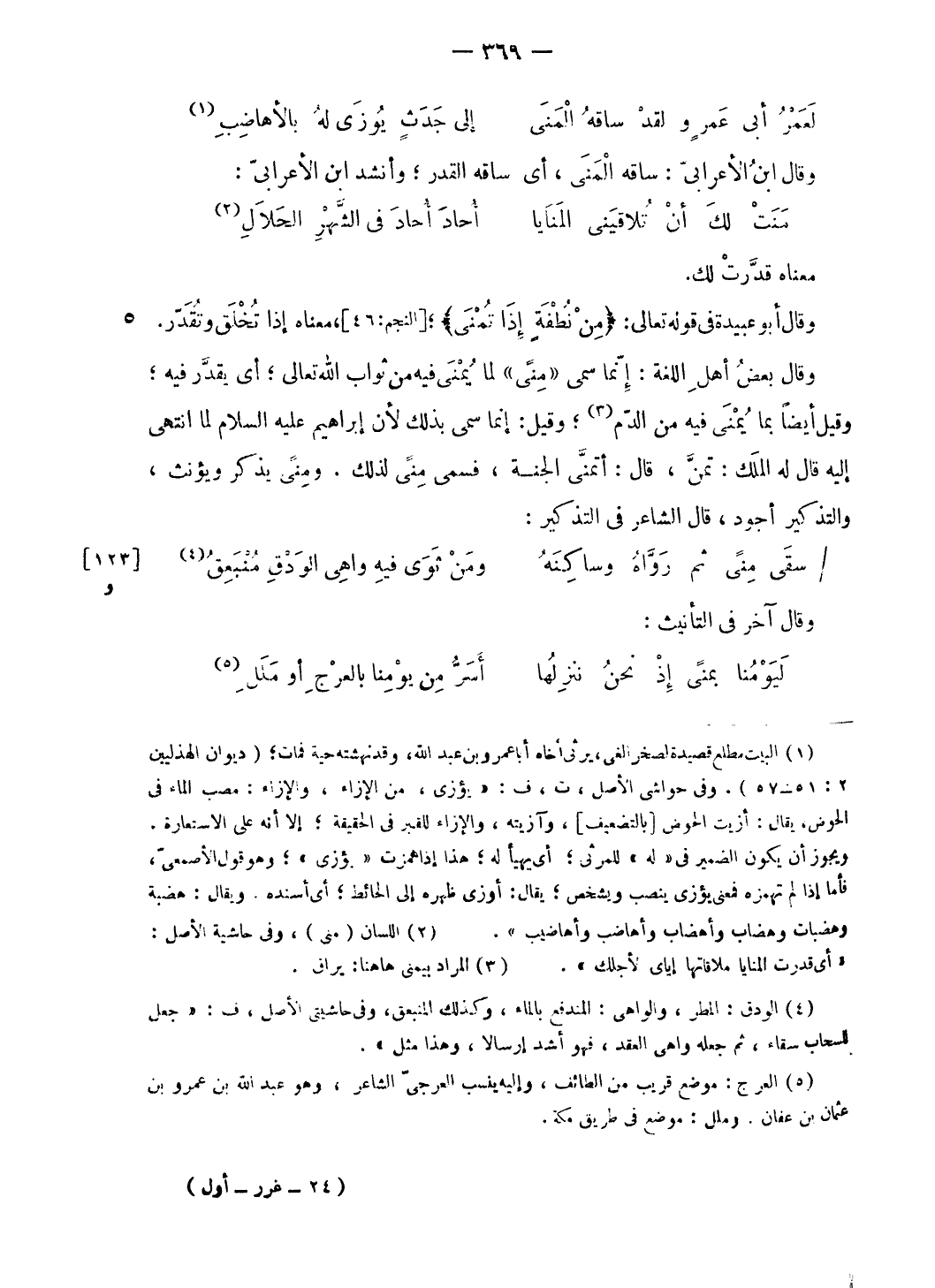 (¬2) اللسان (منى)، وفى حاشية الأصل: