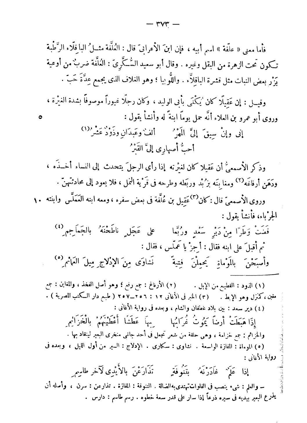 فأما معنى «علّفة» اسم أبيه، فإن ابن الأعرابىّ قال: العلّفة مثل الباقلّاء الرّطبة تكون تحت الزهرة من البقل وغيره. وقال أبو سعيد السّكّريّ: العلّفة ضرب من أوعية بزر بعض النبات مثل قشرة الباقلّاء. واللّوبيا؛ وهو الغلاف الّذي يجمع عدّة حبّ.