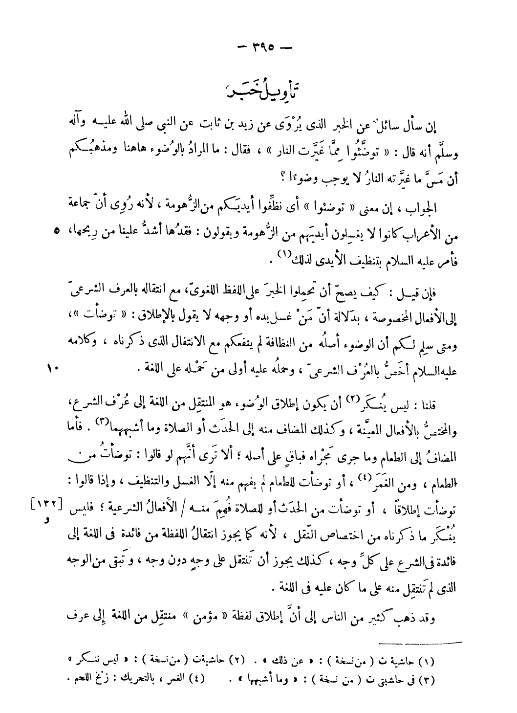 تأويل خبر [«توضّئوا ممّا غيّرت النار»]