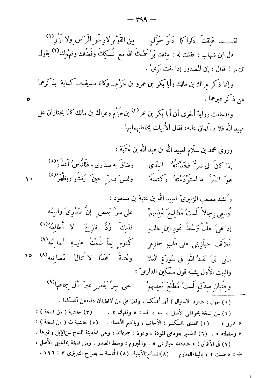 وانشد مصعب الزبيرىّ لعبيد الله بن عتبة بن مسعود: