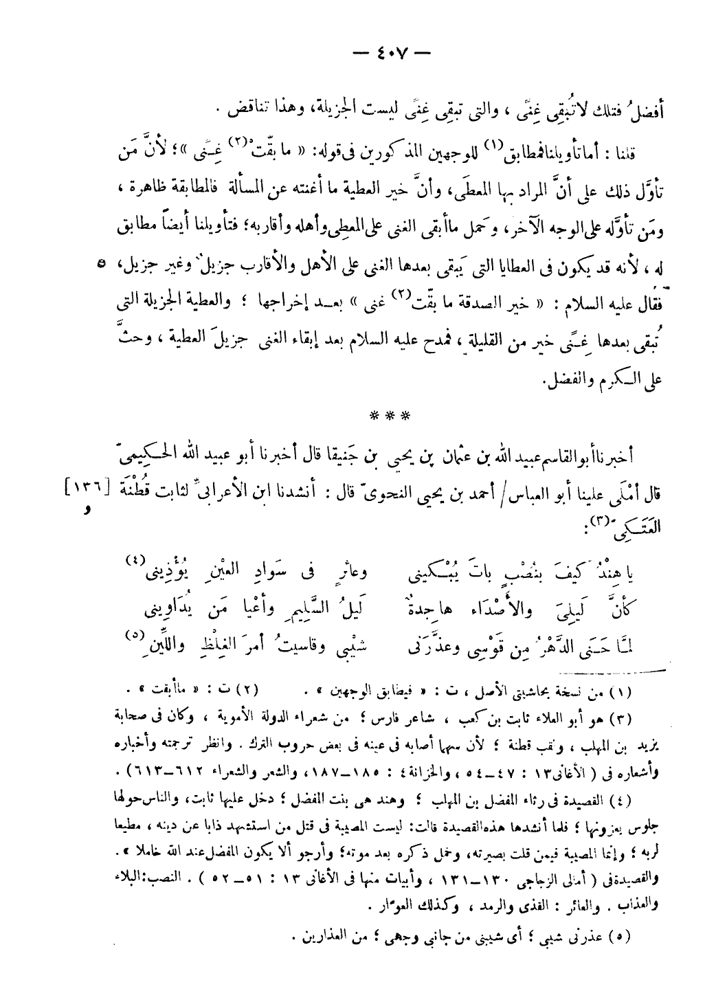 أخبرنا أبو القاسم عبيد الله بن عثمان بن يحيى بن جنيقا قال أخبرنا أبو عبد الله الحكيمىّ قال أملى علينا أبو العباس/ أحمد بن يحيى النحوىّ قال: أنشدنا ابن الأعرابىّ لثابت قطنة العتكىّ (¬3):