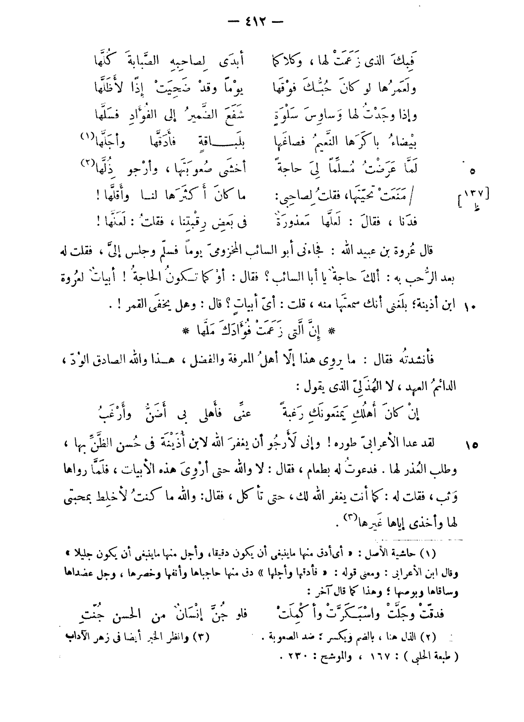 (¬3) وانظر الخبر أيضا فى زهر الآداب (طبعة الحلبى): 167، والموشح: 230.