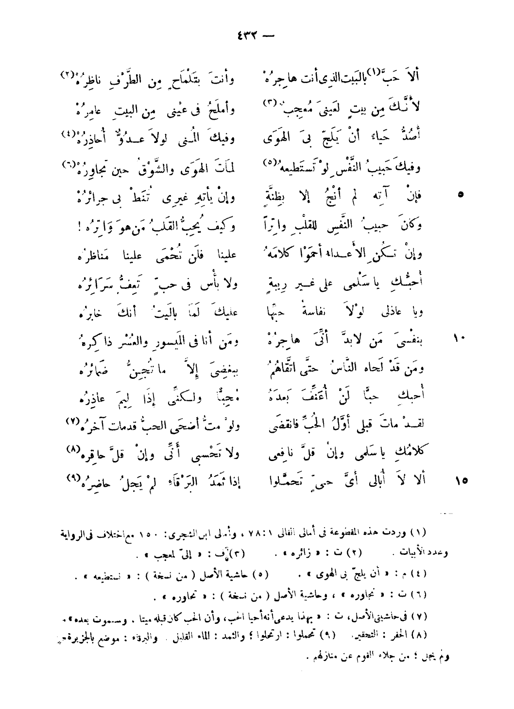 (¬7) فى حاشيتى الأصل، ت: «بهذا يدعى أنه أحيا الحب، وأن الحب كان قبله ميتا، وسيموت بعده».