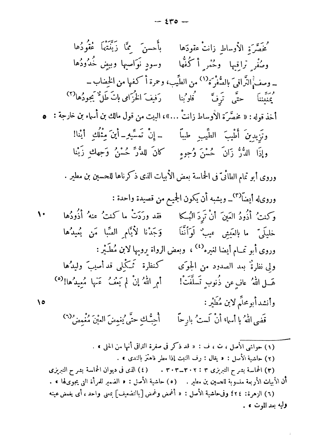 (¬4) الّذي فى ديوان الحماسة بشرح التبريزى أن الأبيات الأربعة منسوبة للحسين بن مطير.