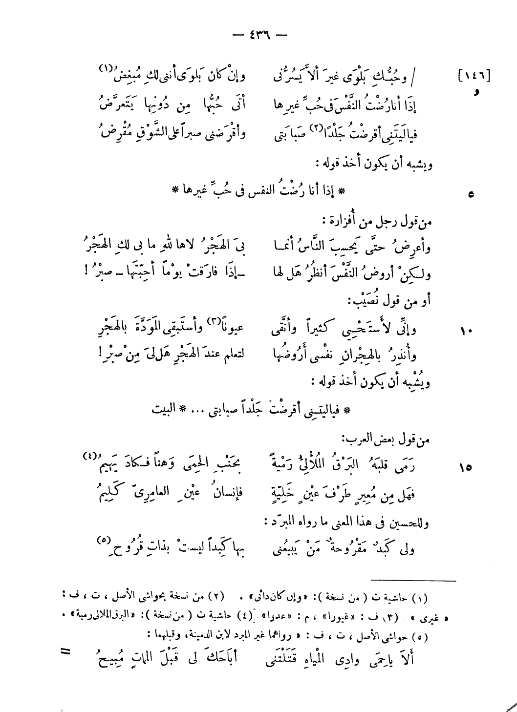 (¬5) حواشى الأصل، ت، ف: «رواهما غير المبرد لابن الدمينة، وقبلهما: