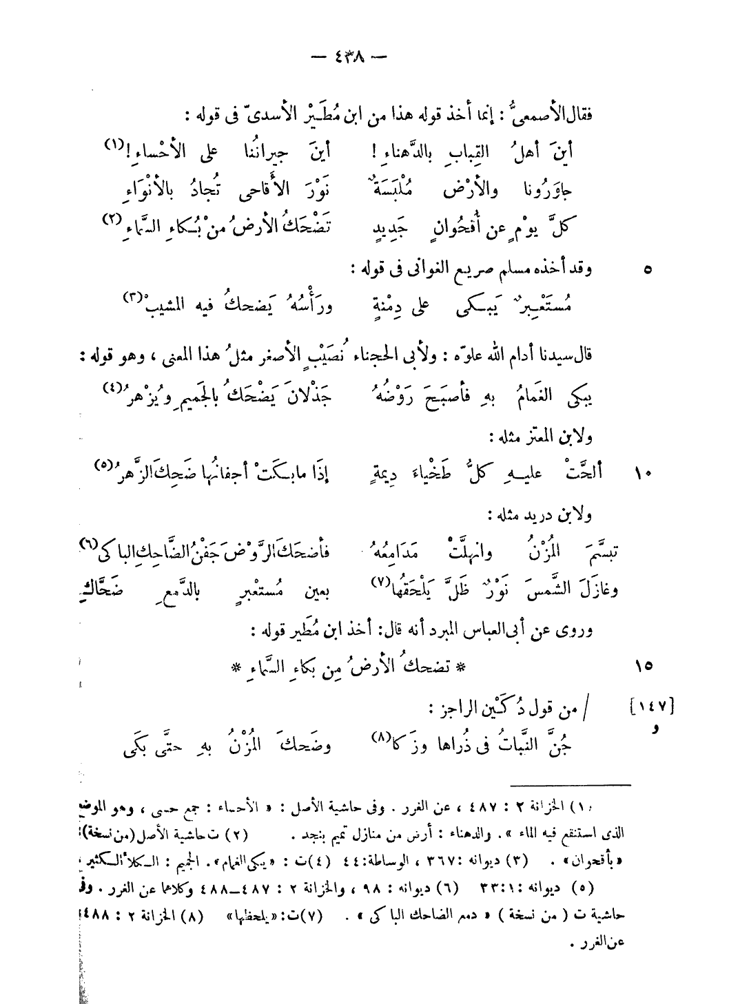 فقال الأصمعىّ: إنما أخذ قوله هذا من ابن مطير الأسدىّ فى قوله: