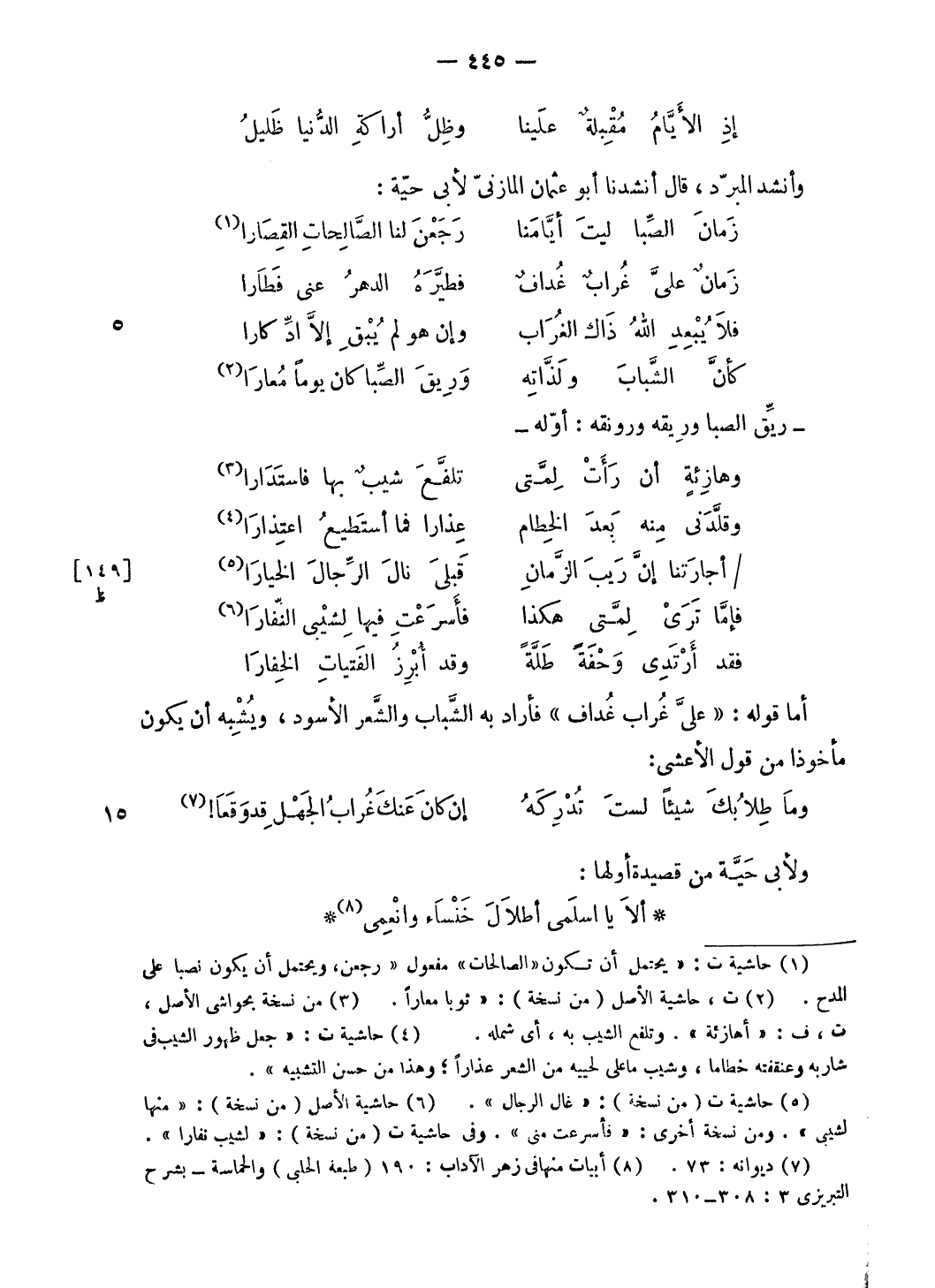 وأنشد المبرّد، قال أنشدنا أبو عثمان المازنىّ لأبى حيّة:
