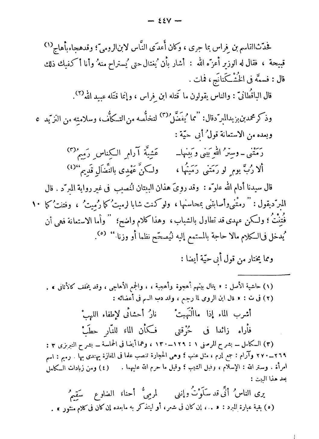 (¬5) بقية عبارة المبرد: « .. ، إن كان فى شعر، أو ليتذكر به ما بعده إن كان فى كلام منثور».