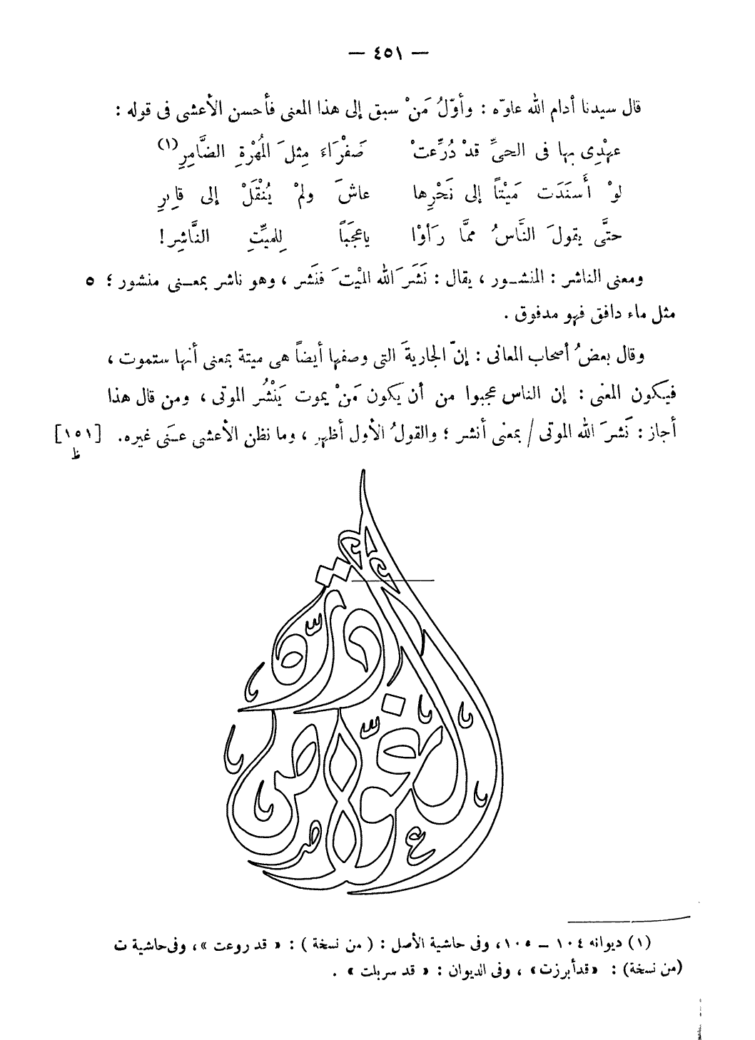 قال سيدنا أدام الله علوّه: وأوّل من سبق إلى هذا المعنى فأحسن الأعشى فى قوله: