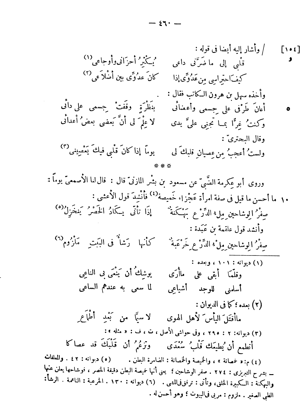 (¬5) ديوانه: 42. والمعلقات- بشرح التبريزى: 274. صفر الوشاحين؛ يعنى أنها خميصة البطن دقيقة الخصر، فوشاحها يعلن عنها والبهكنة: الكبيرة الخلق، وتأتى: ترفق فى المشى.