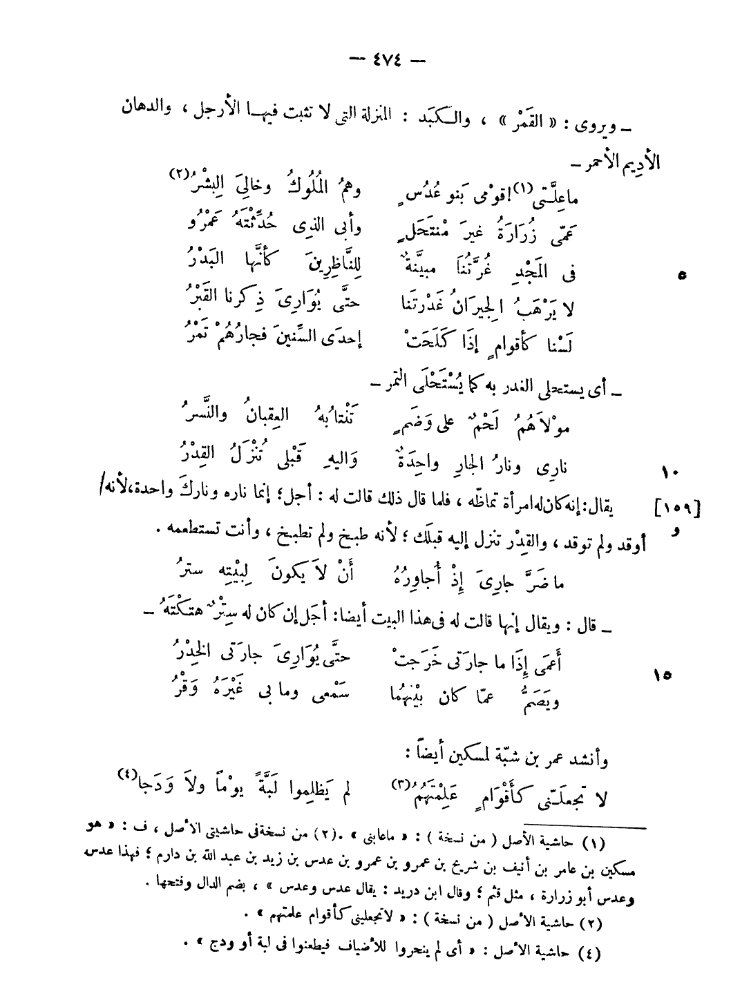 (¬2) من نسخة فى حاشيتى الأصل، ف: «هو مسكين بن عامر بن أنيف بن شريح بن عمرو بن عمرو بن عدس بن زيد بن عبد الله بن دارم؛ فهذا عدس وعدس أبو زرارة، مثل قثم؛ وقال ابن دريد: يقال عدس وعدس»، بضم الدال وفتحها.