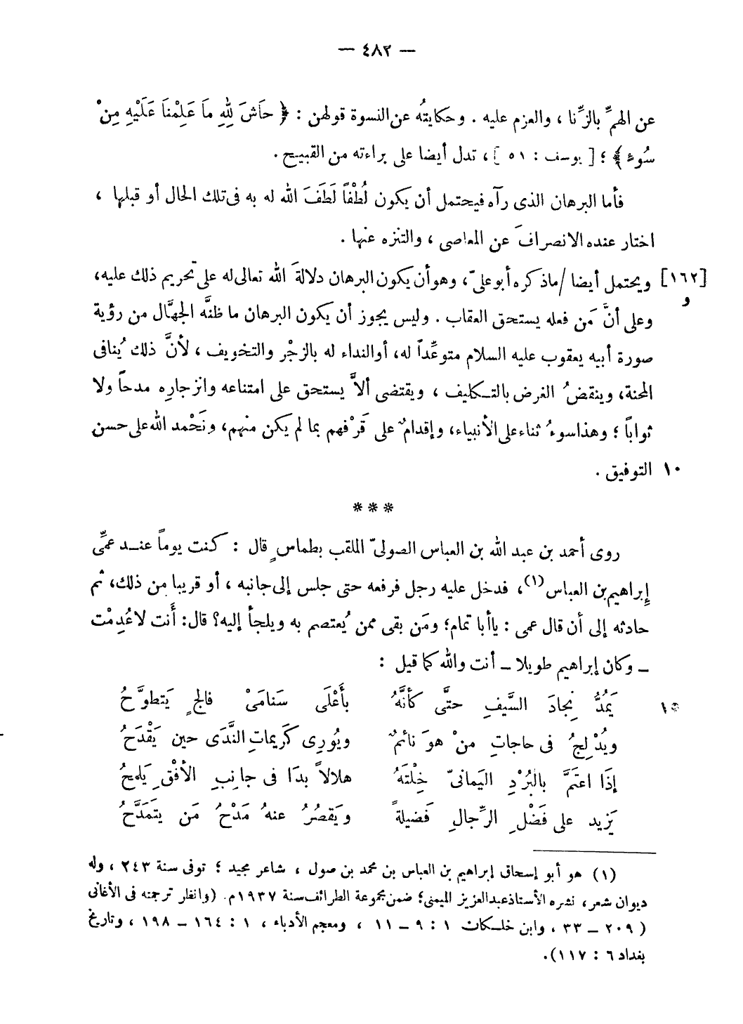 (¬1) هو أبو إسحاق إبراهيم بن العباس بن محمد بن صول، شاعر مجيد؛ توفى سنة 243، وله ديوان شعر، نشره الأستاذ عبد العزيز الميمنى؛ ضمن مجموعة الطرائف سنة 1937 م (وانظر ترجمته فى الأغانى (209 - 33، وابن خلكان 1: 9 - 11، ومعجم الأدباء، 1: 164 - 198، وتاريخ بغداد 6: 117).
