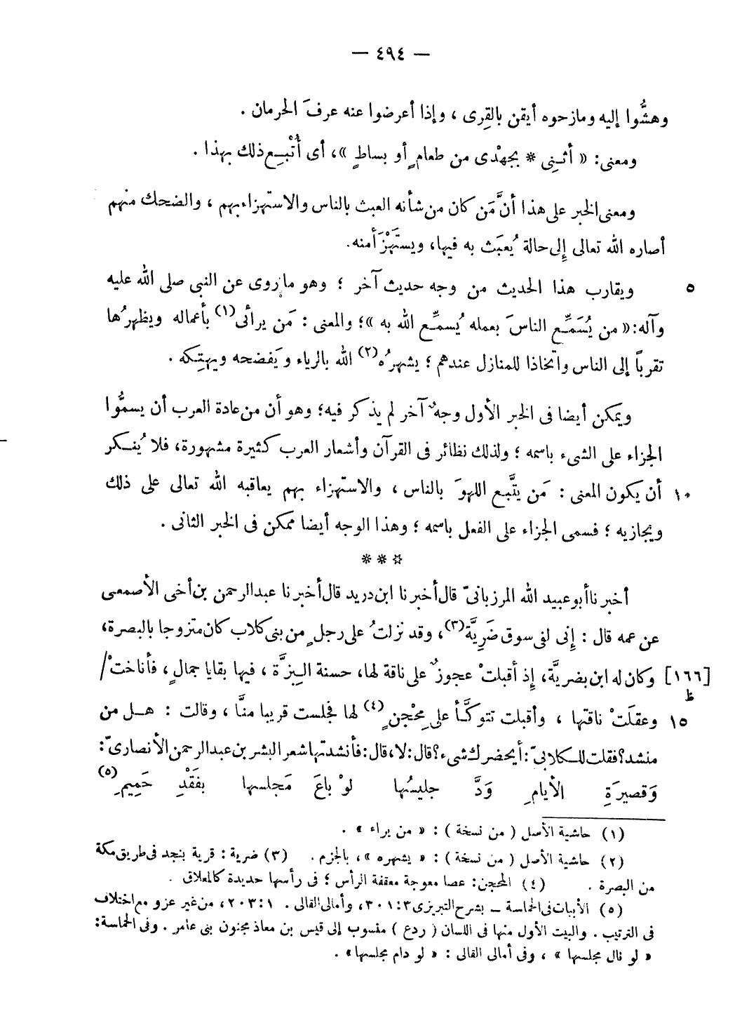 ويمكن أيضا فى الخبر الأول وجه آخر لم يذكر فيه؛ وهو أن من عادة العرب أن يسمّوا الجزاء على الشيء باسمه؛ ولذلك نظائر فى القرآن وأشعار العرب كثيرة مشهورة، فلا ينكر أن يكون المعنى: من يتّبع اللهو بالناس، والاستهزاء بهم يعاقبه الله تعالى على ذلك ويجازيه؛ فسمى الجزاء على الفعل باسمه؛ وهذا الوجه أيضا ممكن فى الخبر الثانى.
