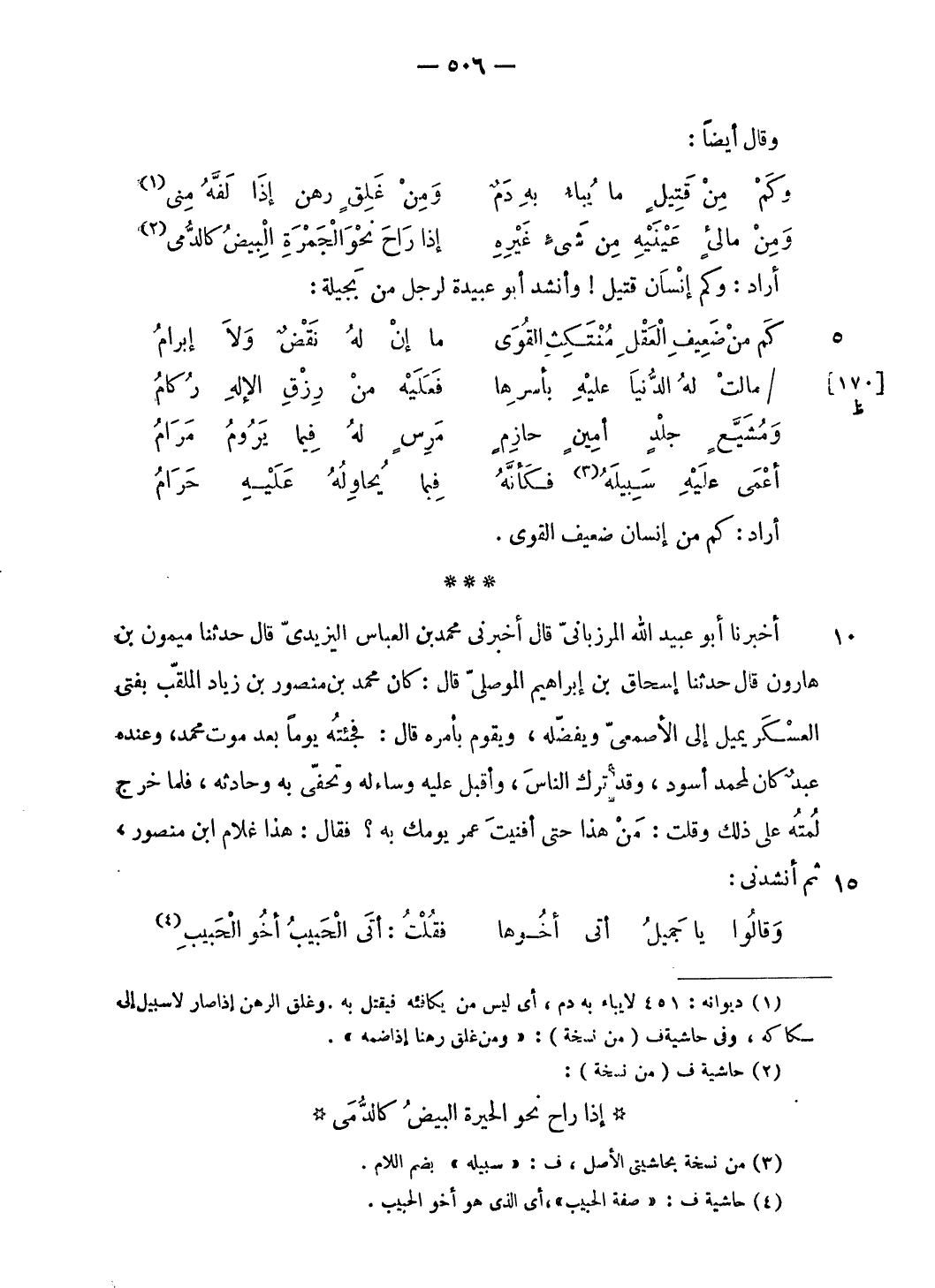 وقالوا يا جميل أتى أخوها … فقلت: أتى الحبيب أخو الحبيب (¬4)