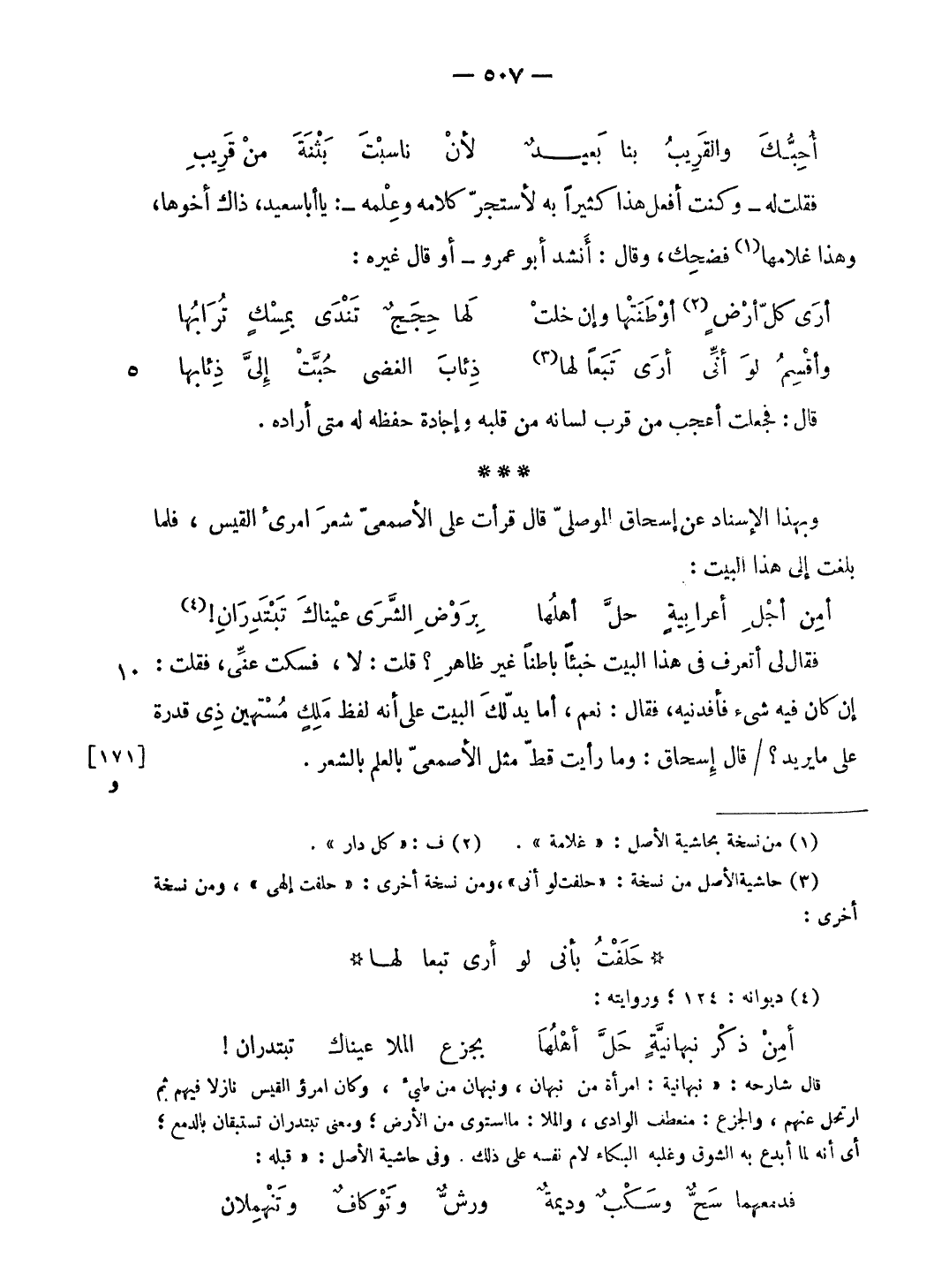 وبهذا الإسناد عن إسحاق الموصلىّ قال قرأت على الأصمعىّ شعر امرئ القيس، فلما بلغت إلى هذا البيت: