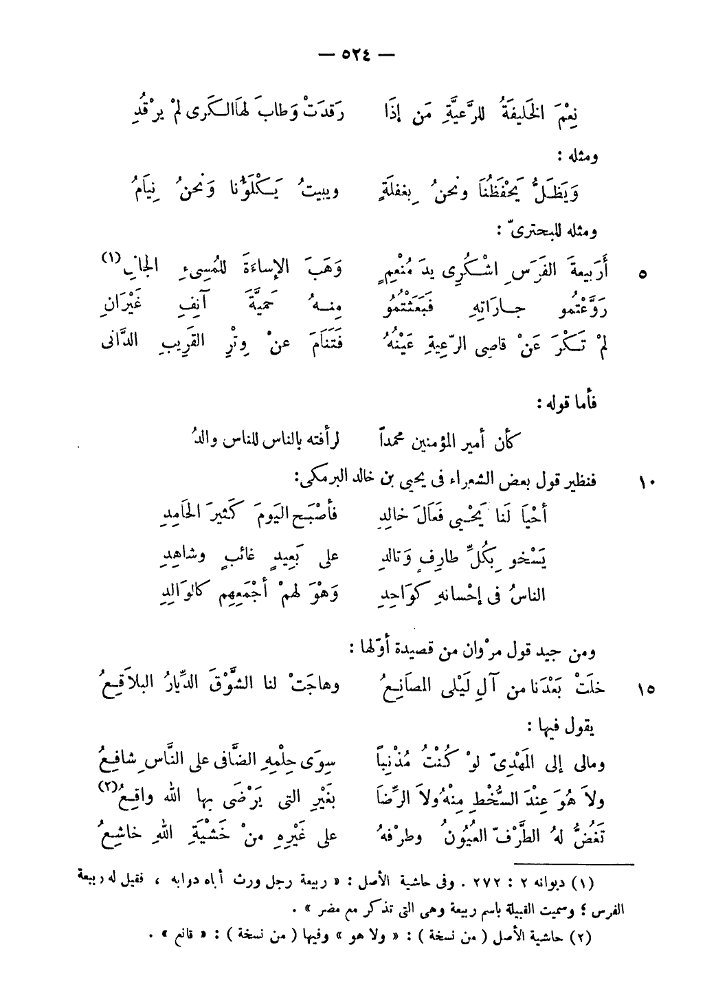 (¬1) ديوانه 2: 272. وفى حاشية الأصل: «ربيعة رجل ورث أباه دوابه، فقيل له ربيعة الفرس؛ وسميت القبيلة باسم ربيعة وهى التى تذكر مع مضر».