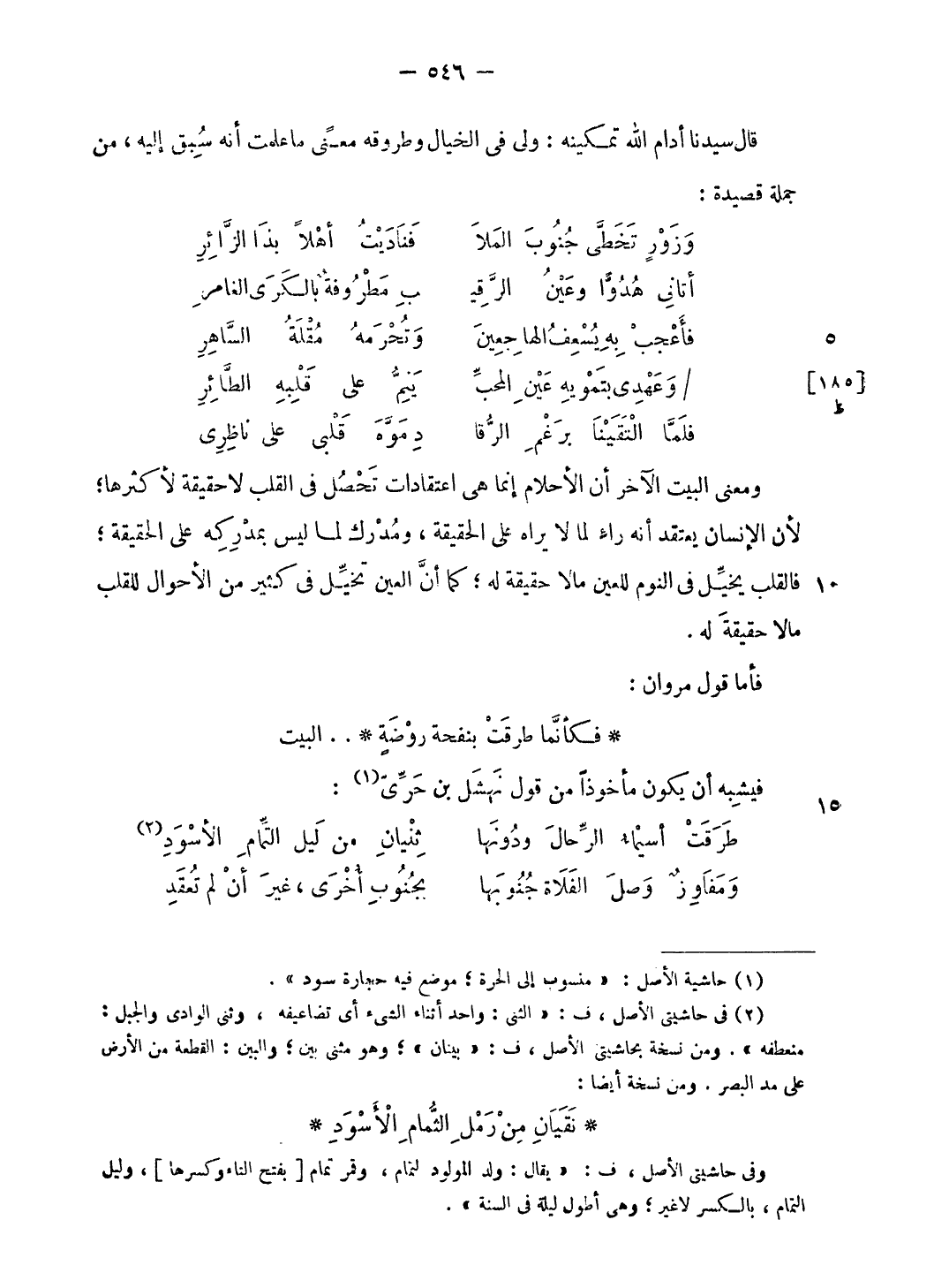 قال سيدنا أدام الله تمكينه: ولي فى الخيال وطروقه معنى ما علمت أنه سبق إليه، من جملة قصيدة: