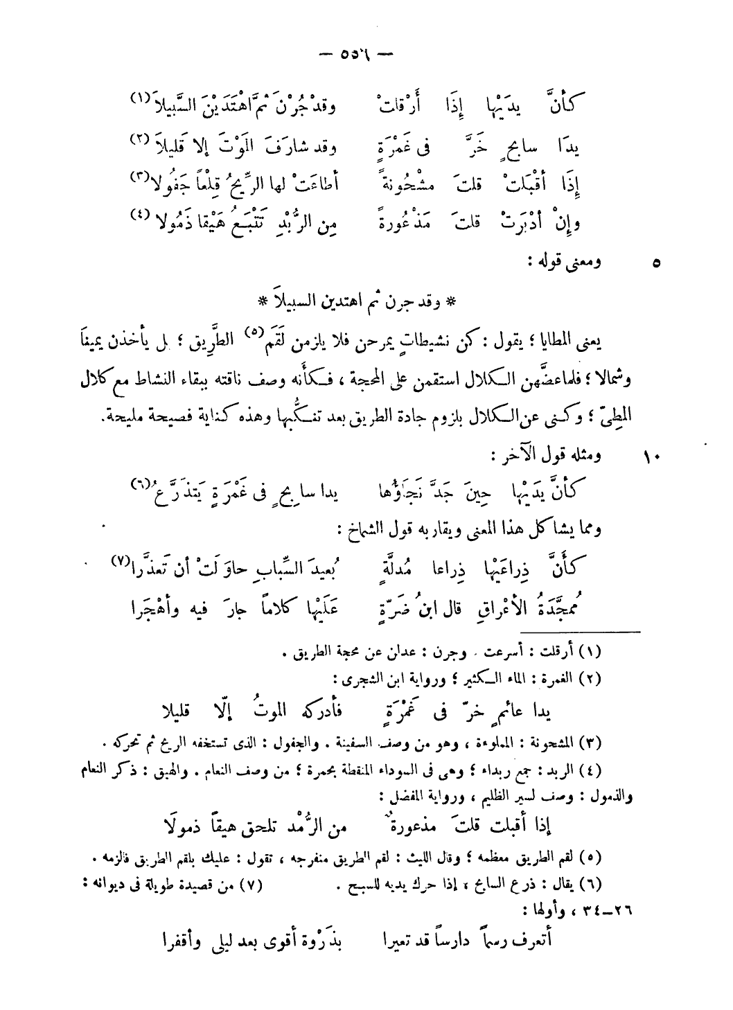 يعنى المطايا؛ يقول: كن نشيطات يمرحن فلا يلزمن لقم (¬5) الطّريق؛ بل يأخذن يمينا وشمالا؛ فلما عضّهن الكلال استقمن على المحجة، فكأنه وصف ناقته ببقاء النشاط مع كلال المطىّ؛ وكنى عن الكلال بلزوم جادة الطريق بعد تنكّبها وهذه كناية فصيحة مليحة.