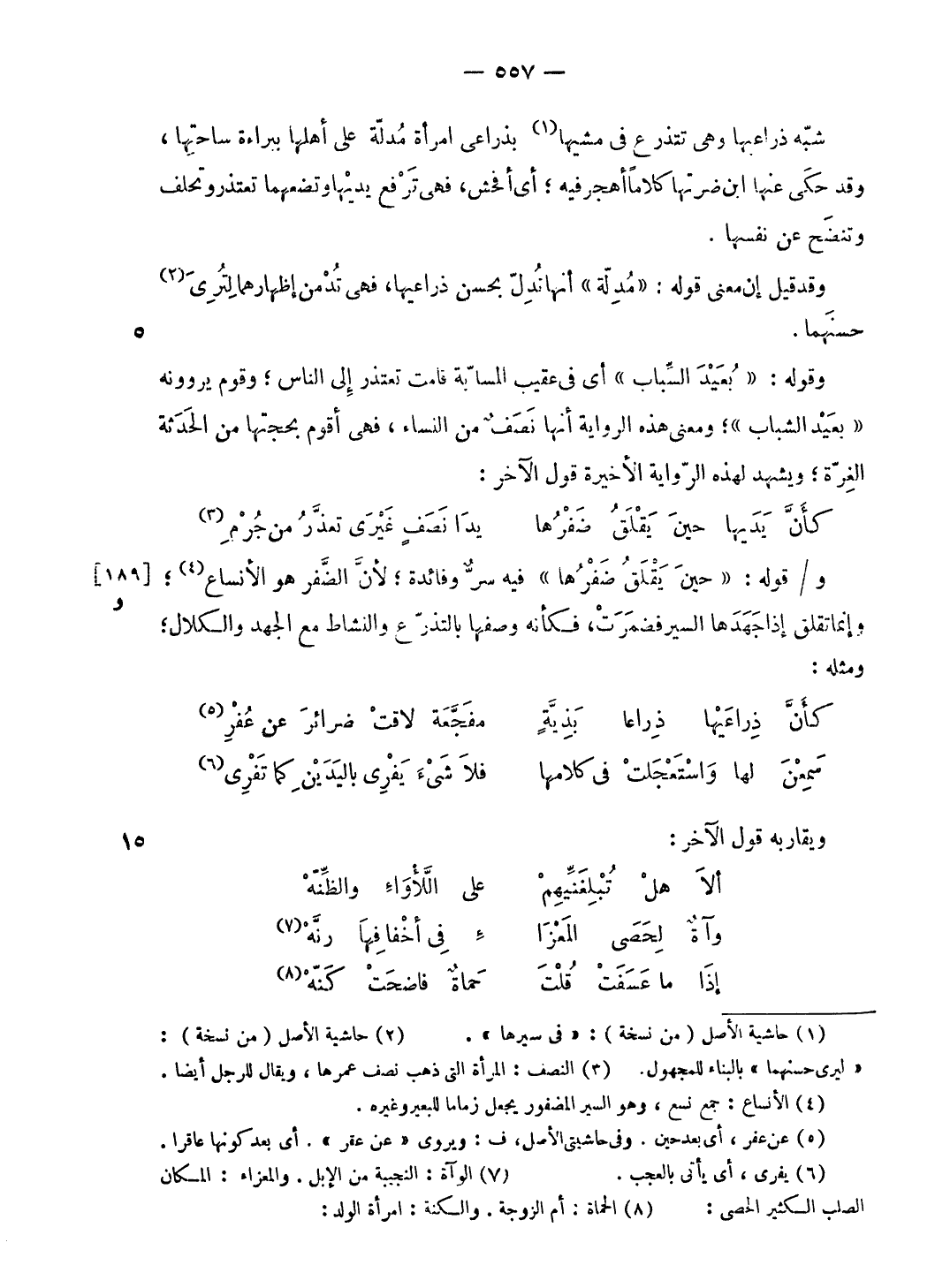 وقد قيل إن معنى قوله: «مدلّة» أنها تدلّ بحسن ذراعيها، فهى تدمن إظهارهما لترى (¬2) حسنهما.