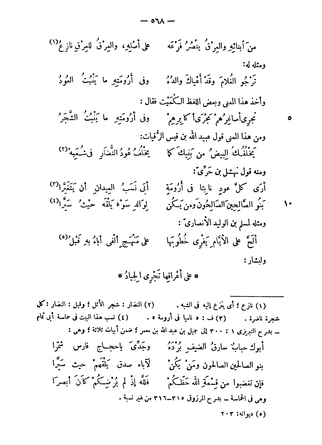 أرى كلّ عود نابتا فى أرومة … أبى نسب العيدان أن يتغيّرا (¬3)