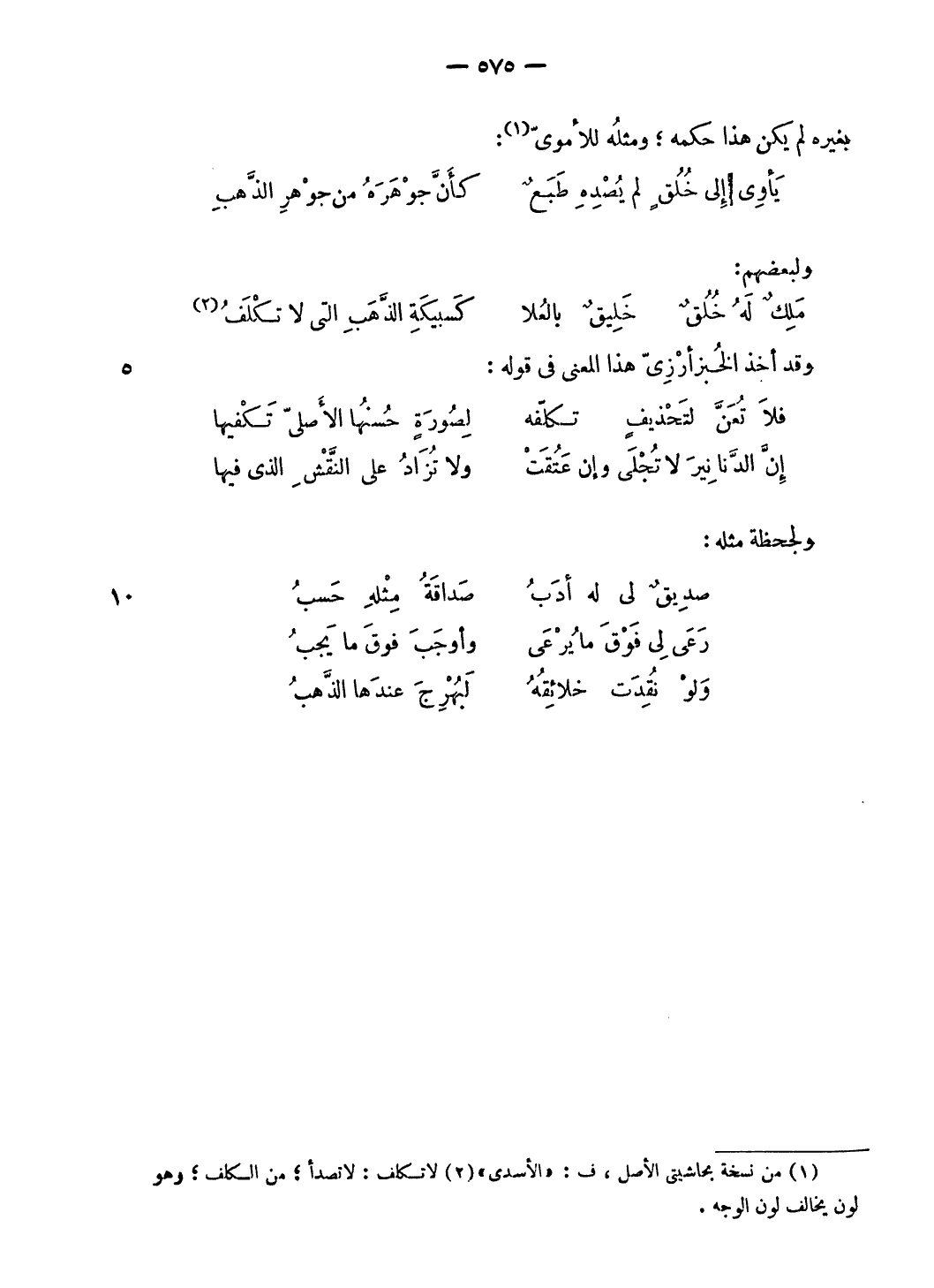 يأوى إلى خلق لم يصده طبع … كأنّ جوهره من جوهر الذّهب