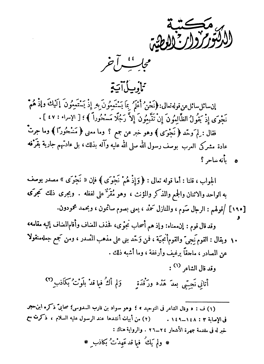 فقال: لم وحّد نَجْوى وهو خبر عن جمع؟ وما معنى مَسْحُوراً وما جرت عادة مشركى العرب بوصف رسول الله