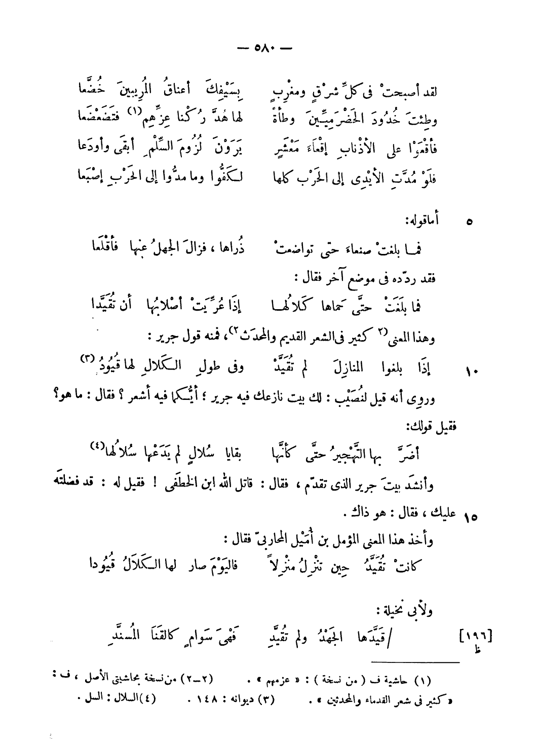 إذا بلغوا المنازل لم تقيّد … وفى طول الكلال لها قيود (¬3)